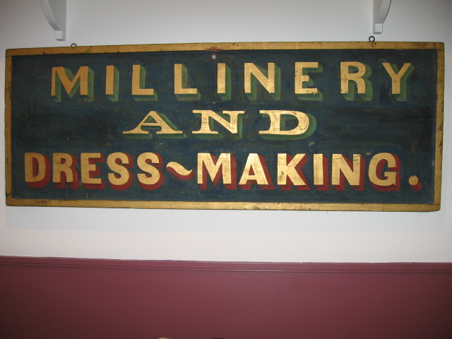 The term “dressmaker” conjures up intriguing, dreamy thoughts for me – and maybe for you, too. I’ve always liked the connotation of it – obviously a female craftsperson, skilled with a needle and working with patterns, creating clothing for women and children. It is a term which spans decades, even centuries, in its relevancy (in the 18th century the term “mantua maker” was interchangeable with “dressmaker” and often the preferred term.) I have two 19th-century trade signs hanging in my sewing room, both for Dressmaking & Millinery, and simply their presence gives me inspiration.