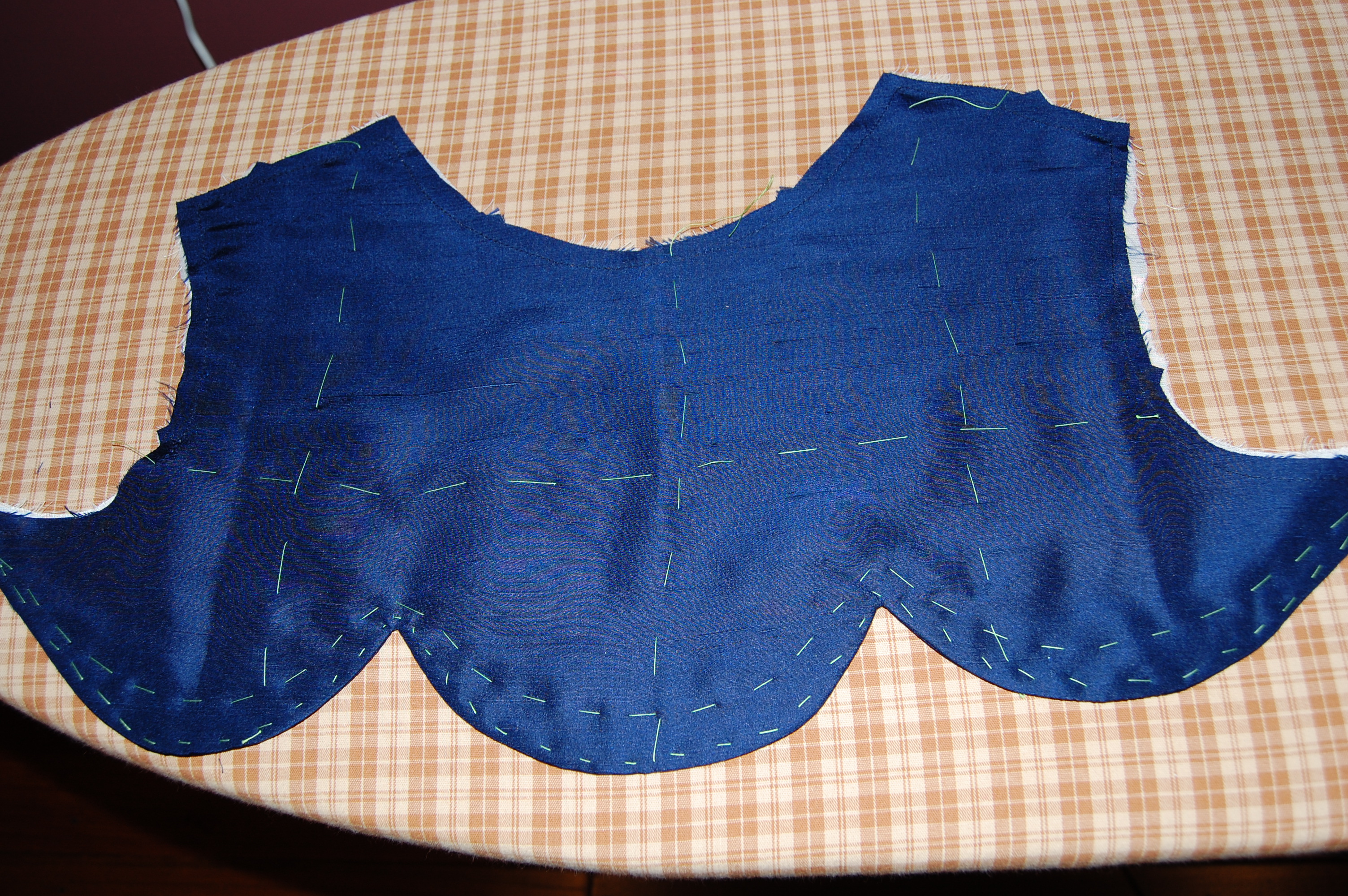 Next I made the button loops and details. The pattern didn’t give too much instruction on these pieces, other than the length they should be and the finished width (1/4”). (I should mention here that I decided to put 5 buttons on the tunic, not 4 as is shown on the pattern.) I cut bias strips 1”wide, folded them in half lengthwise, sewed the seam twice and turned them with a bodkin. Nice and easy!