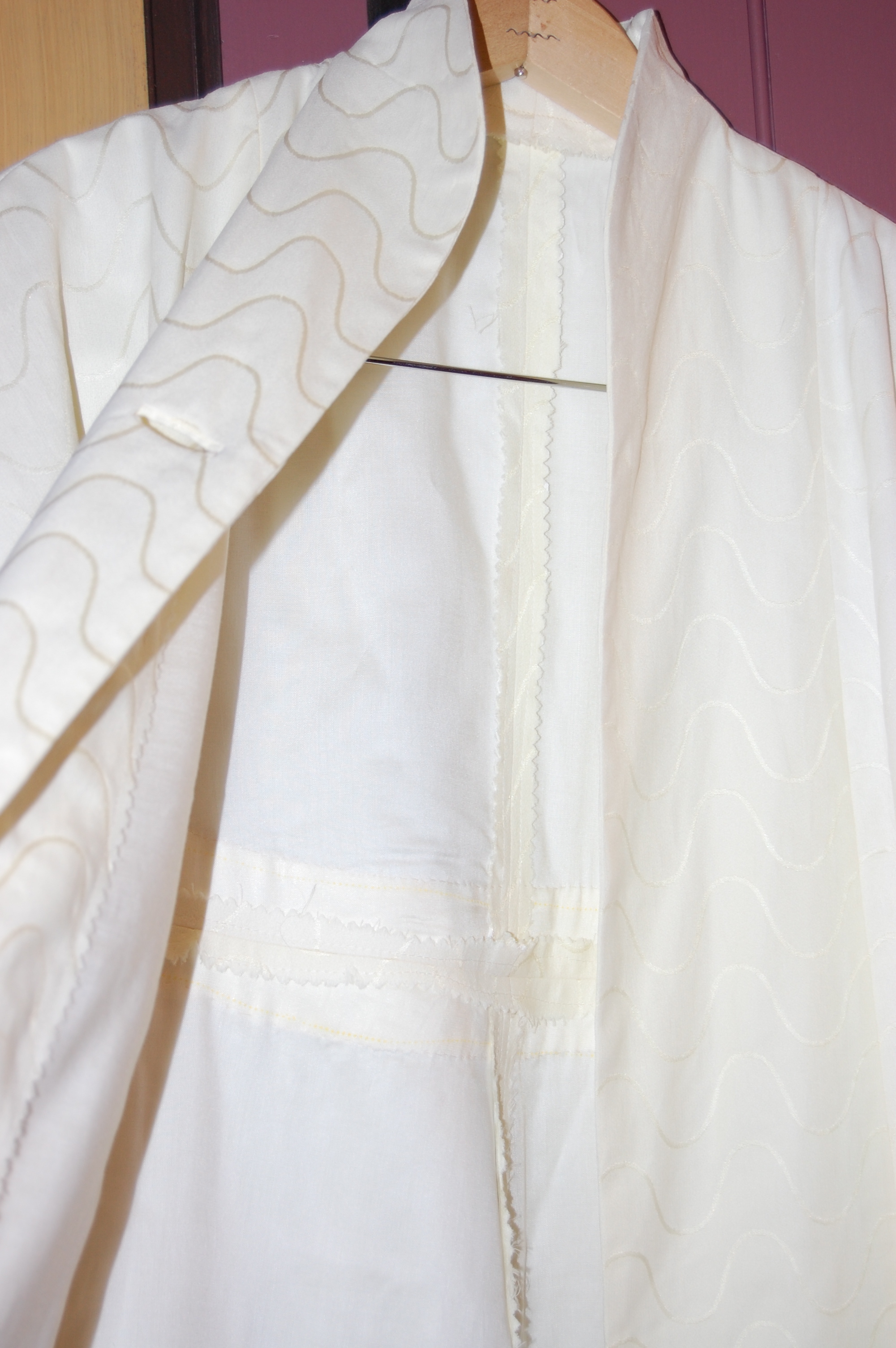 I actually liked the heavier weight of this fabric (I’ve never been a fan of sewing jersey knits), but I had to be extra diligent to minimize bulky seams on the interior of the dress. Instead of self pockets, I made the pockets out of some leftover white silk lining fabric from my raincoat.