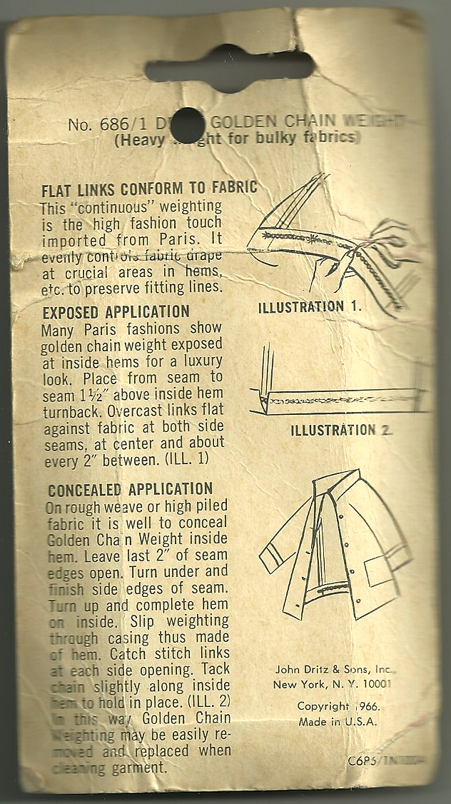 Ordering information for such chains was included in the same issue. However, I know for a fact that these types of chains could be purchased in fabric stores, as I still have one (in its original –albeit tattered – packaging) that I purchased in the late ‘60s!