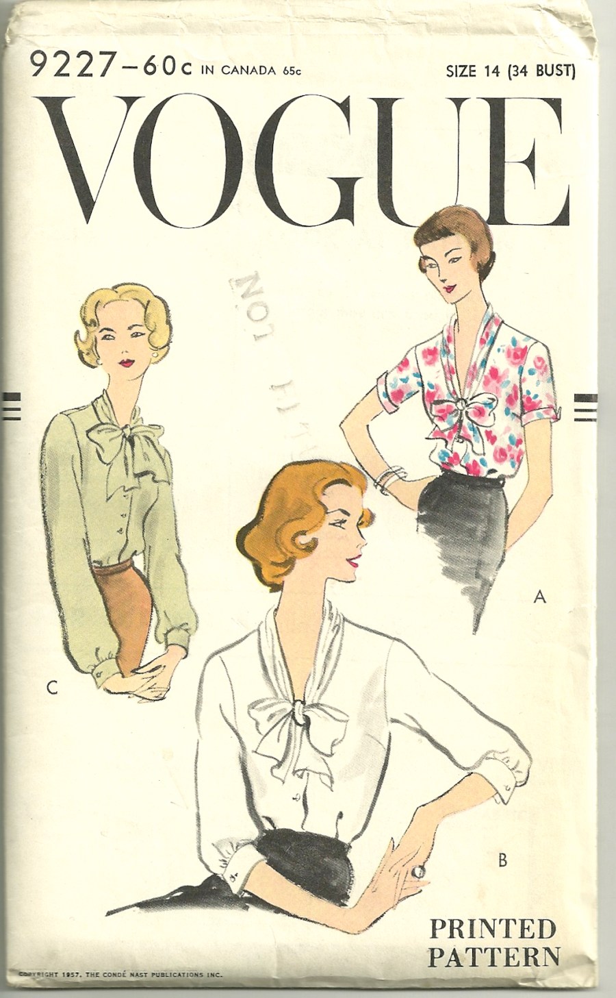 I would love to make another bow blouse this year. This classic look from 1957 is about as lovely a bow blouse as one can find.