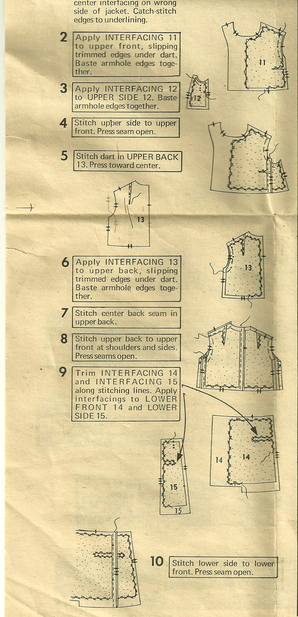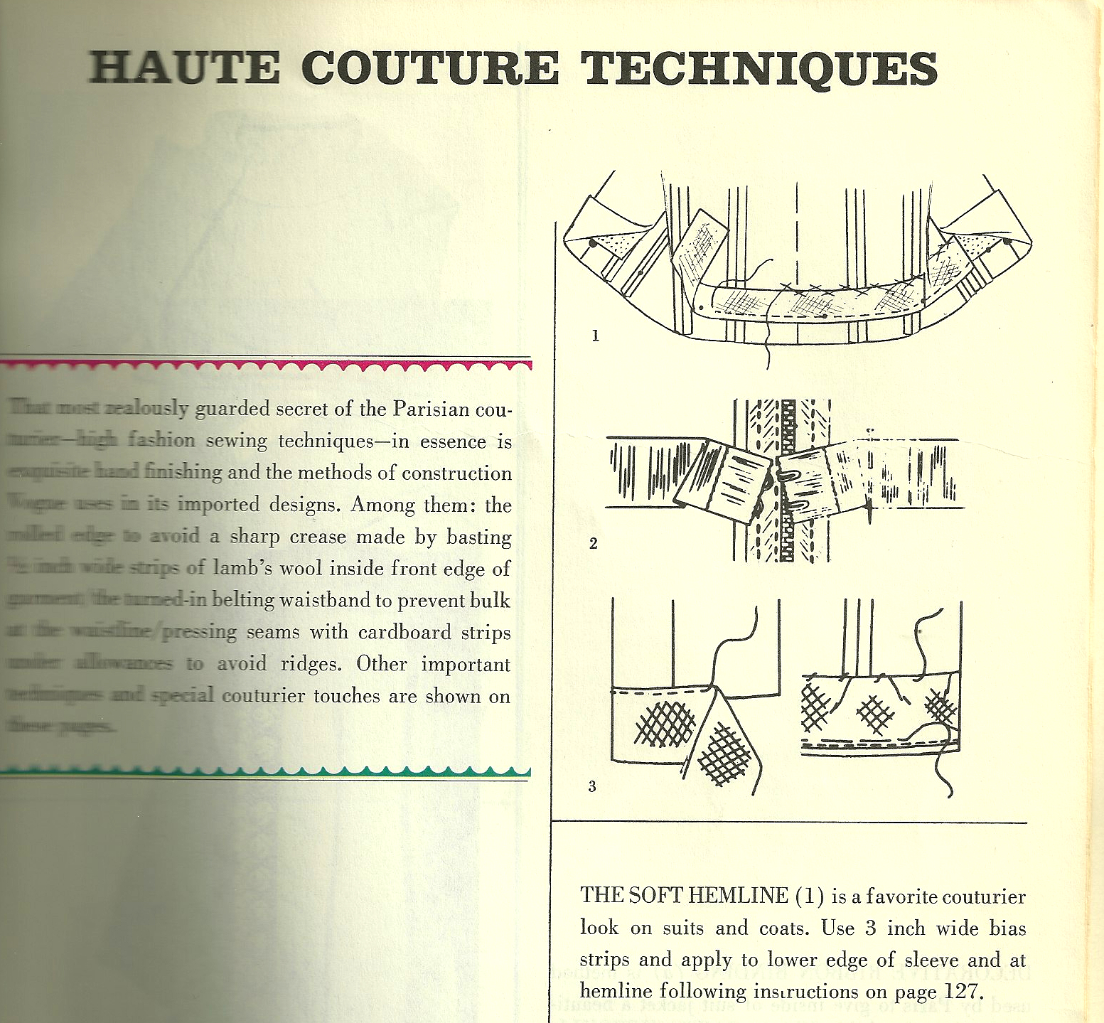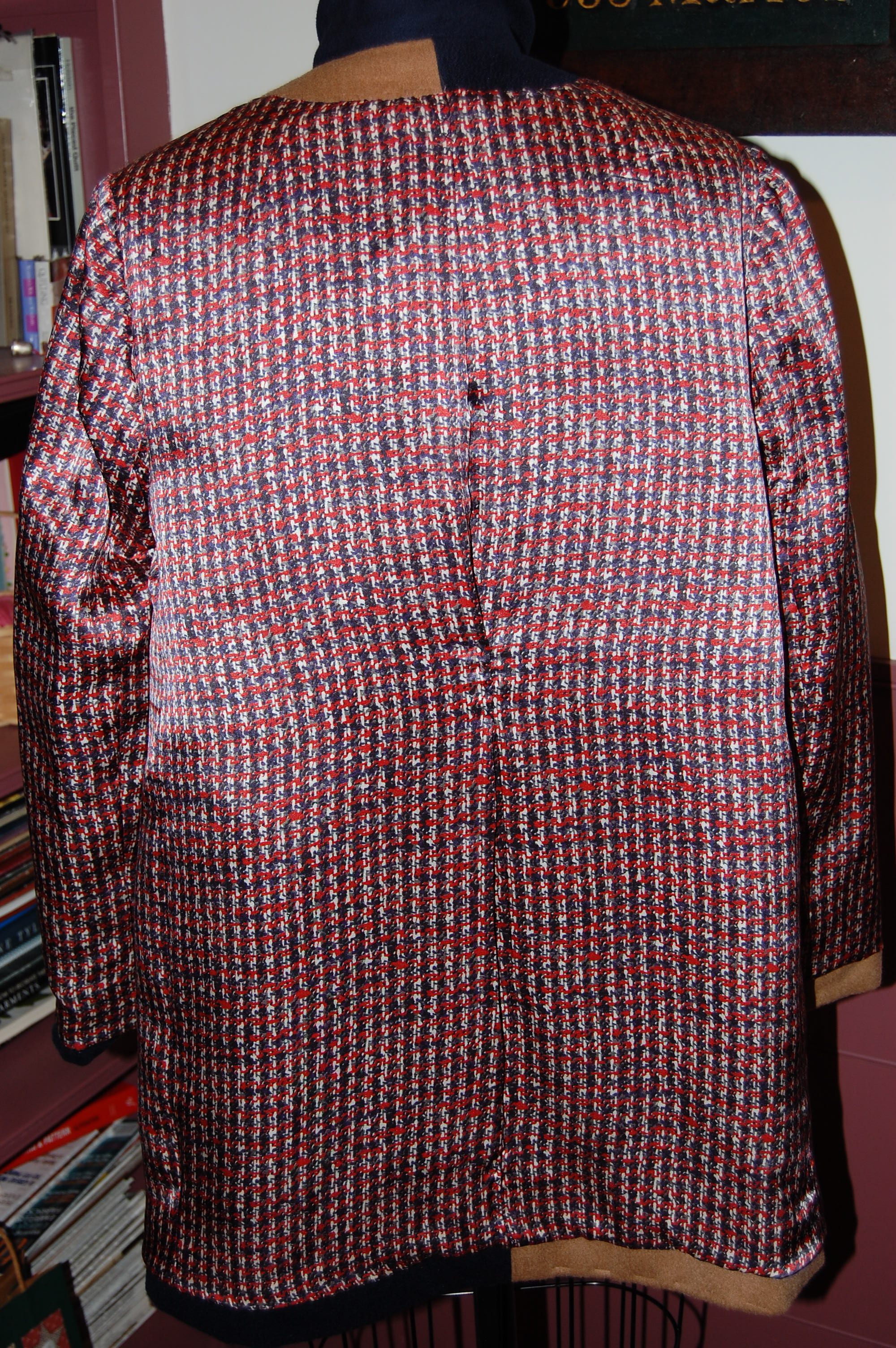 Both the fabric and the patterns sat in hibernation in one of the closets in my sewing room until an idea began to take hold in my mind. I decided I’d like to use one of my Pucci patterns for my authentic Pucci fabric. It just seemed totally logical to me. I measured my fabric again and found I had closer to 2¼ yards. I was envisioning pattern # 1418, with the dress in the silk print, paired with the jacket in black, lined in the same silk. With this plan in mind, I found a lightweight, soft and silky wool/cotton waffle weave in black at Britex Fabrics in early February while I was on the West Coast for Susan Khalje’s Couture Sewing School Class – perfect for the jacket.