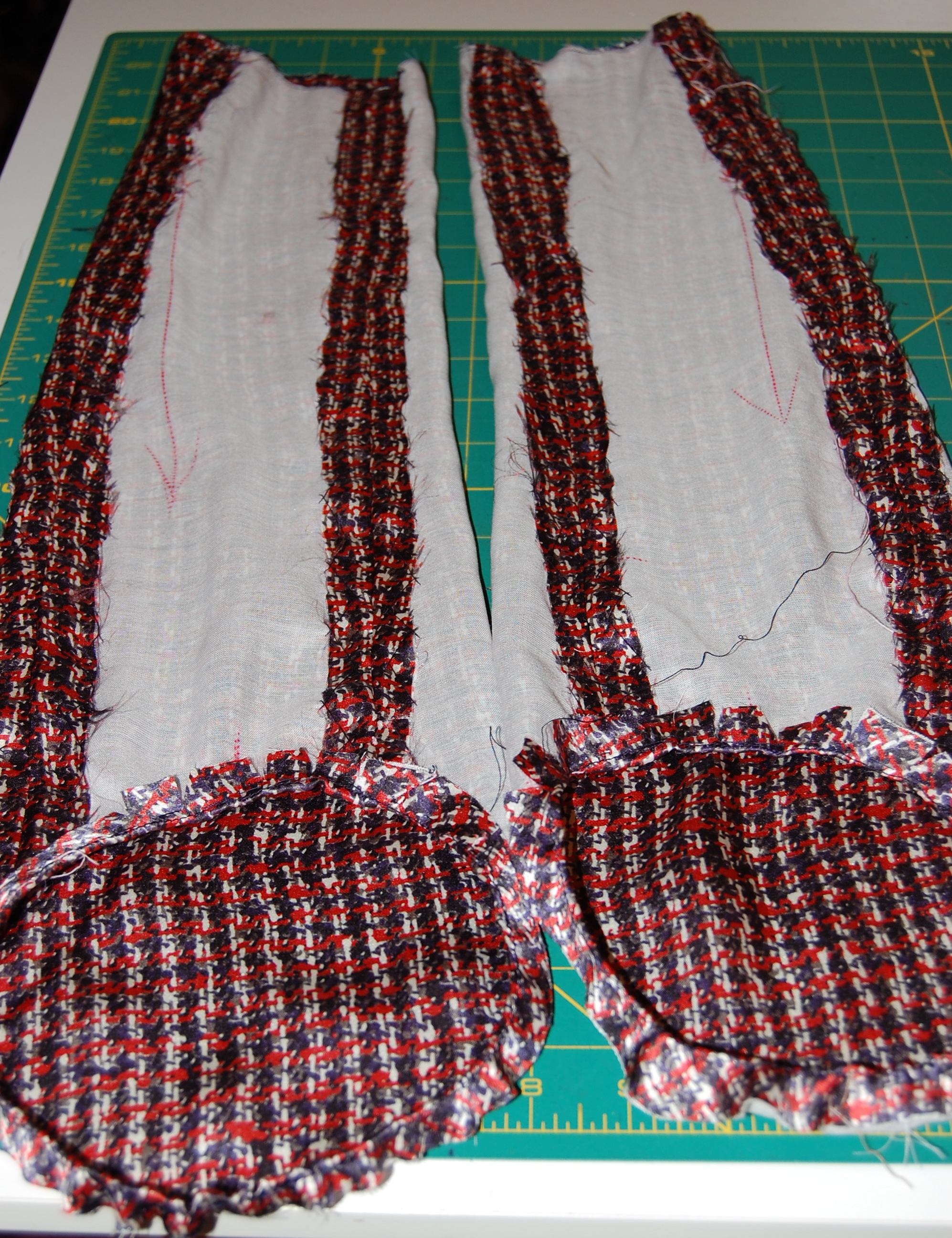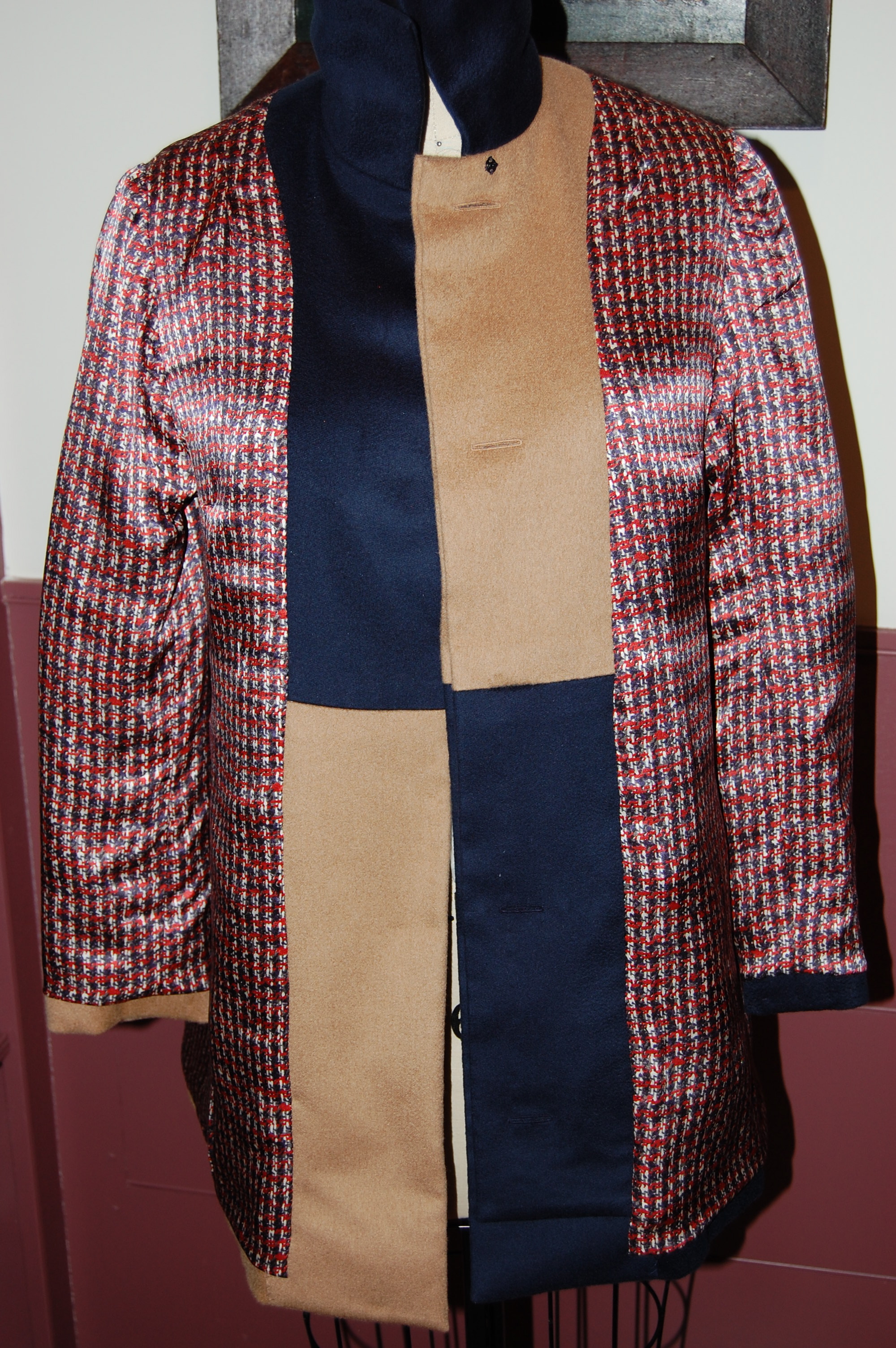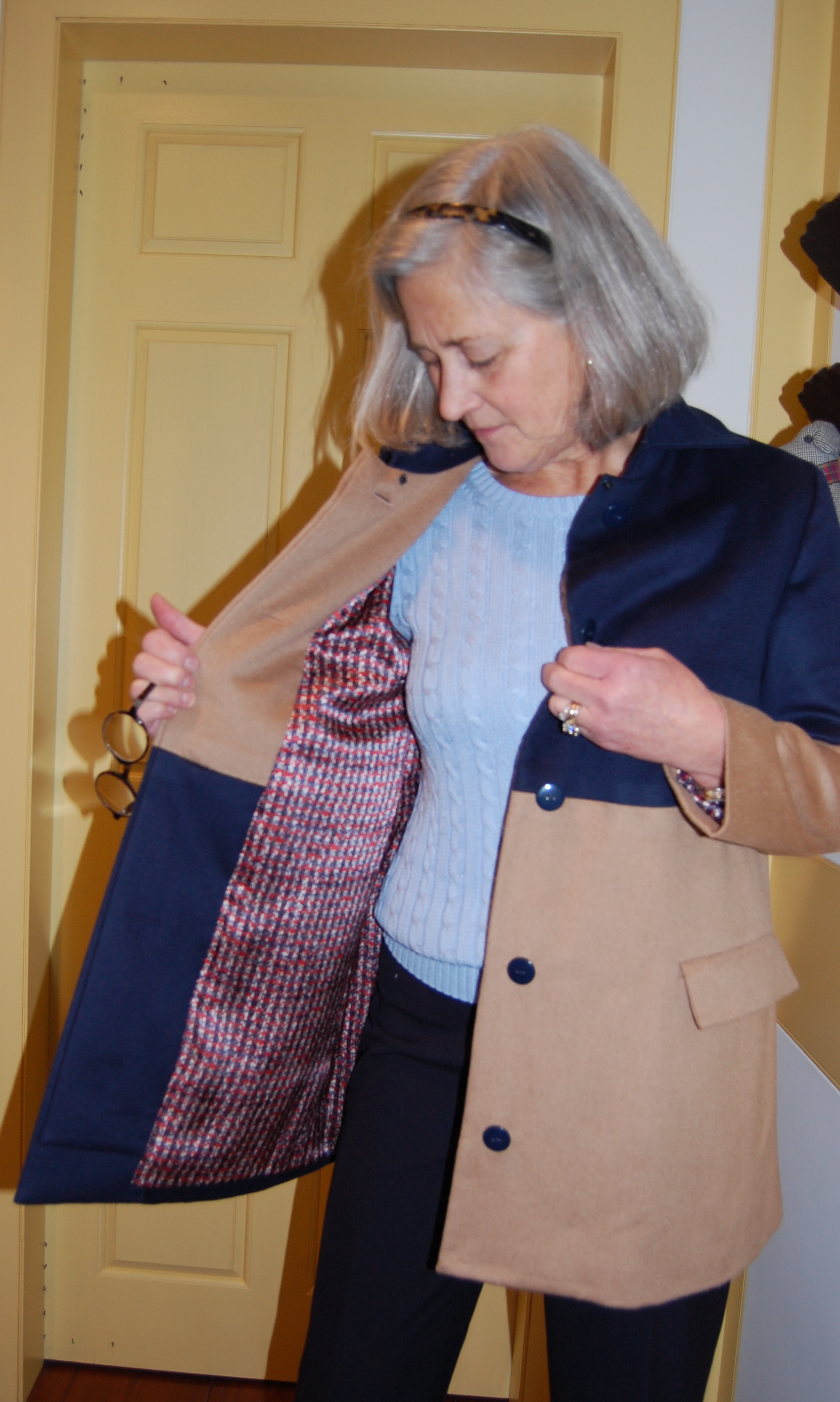 Both the fabric and the patterns sat in hibernation in one of the closets in my sewing room until an idea began to take hold in my mind. I decided I’d like to use one of my Pucci patterns for my authentic Pucci fabric. It just seemed totally logical to me. I measured my fabric again and found I had closer to 2¼ yards. I was envisioning pattern # 1418, with the dress in the silk print, paired with the jacket in black, lined in the same silk. With this plan in mind, I found a lightweight, soft and silky wool/cotton waffle weave in black at Britex Fabrics in early February while I was on the West Coast for Susan Khalje’s Couture Sewing School Class – perfect for the jacket.