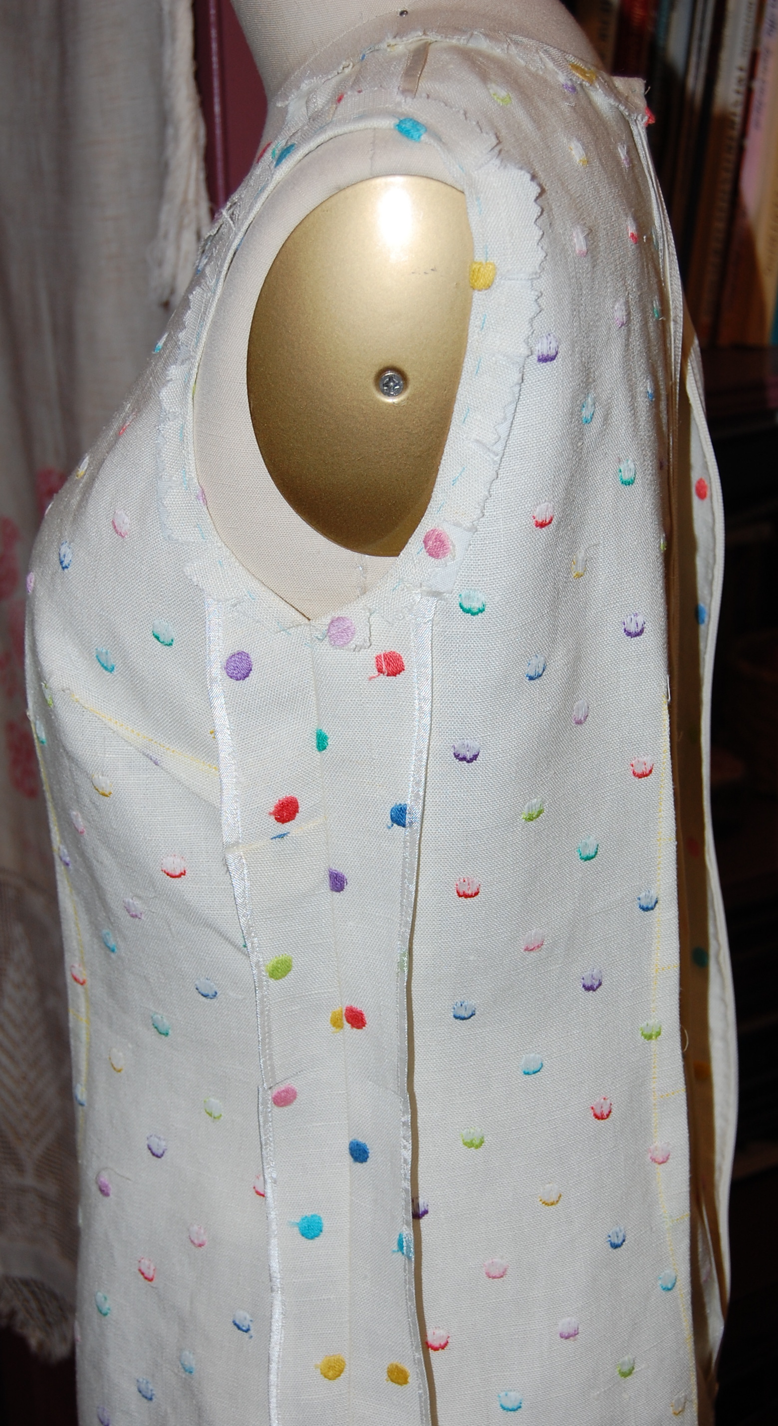 Once the dress and lining were attached, I under-stitched the neck and armhole edges by hand. It really makes a lovely interior!