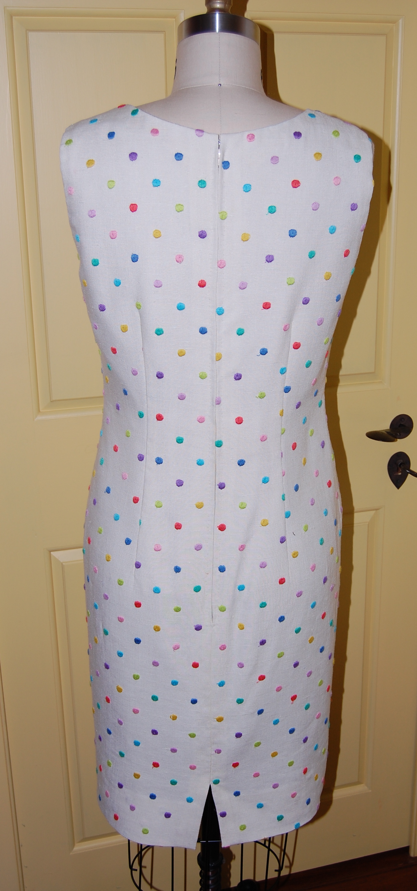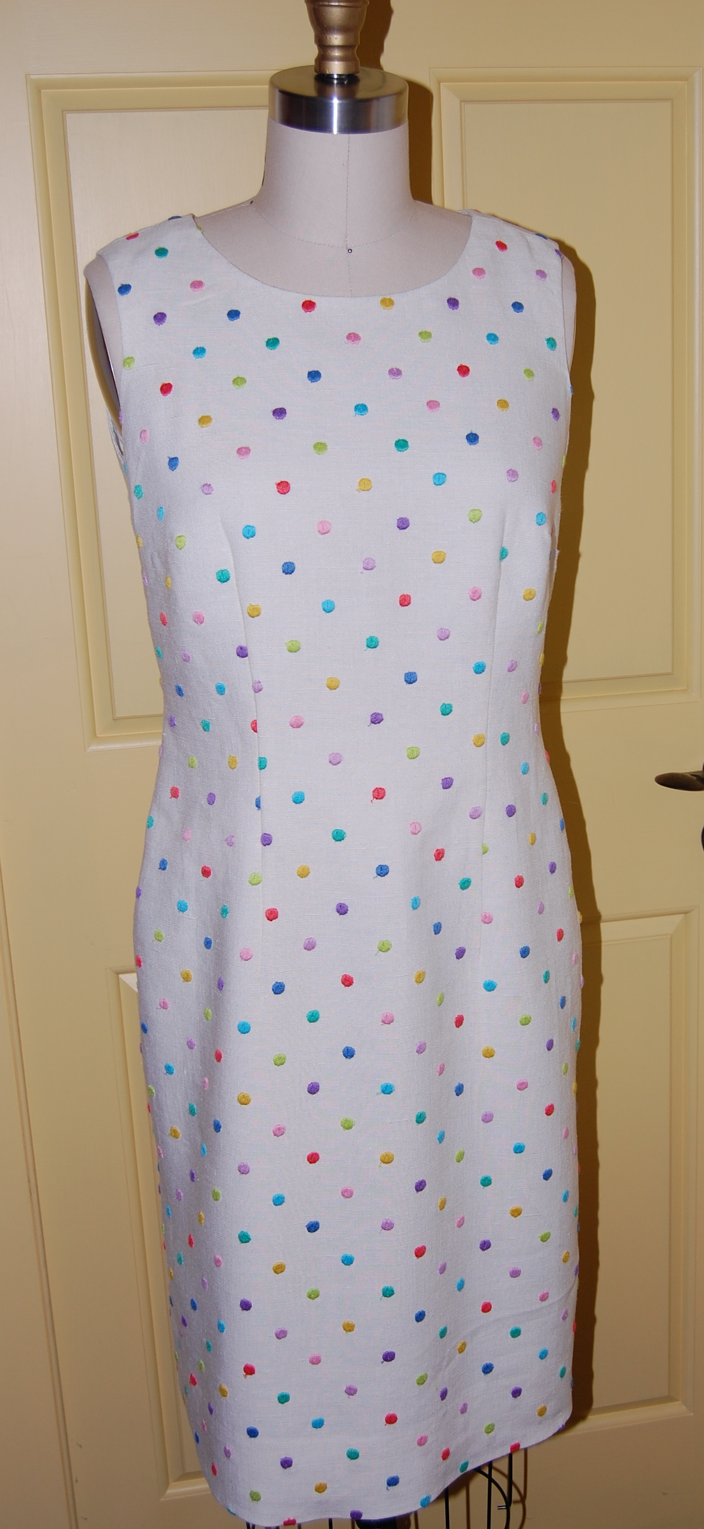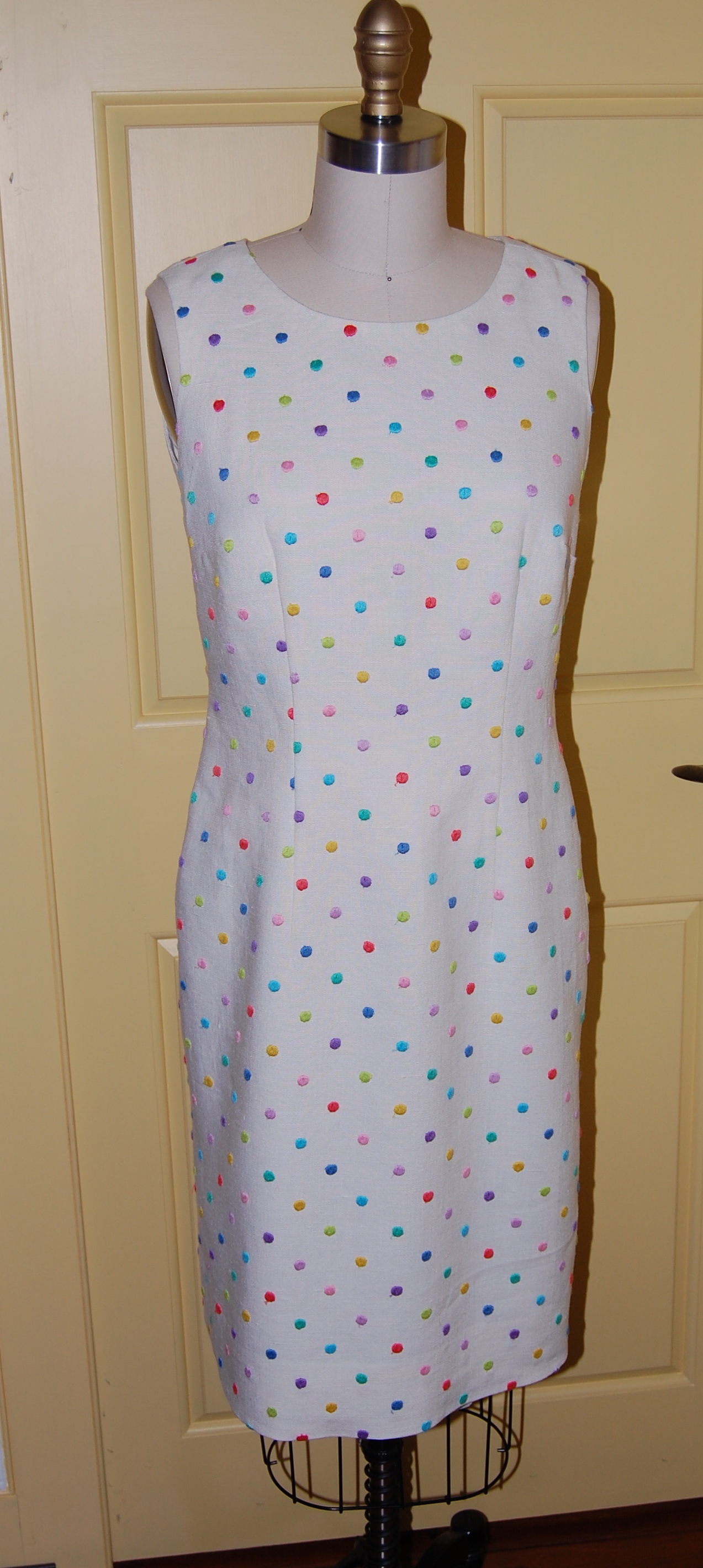Yes, I knew I had an authentic Moygashel linen in hand, and I wanted to make a dress that would be all about the fabric. I envisioned a simple sheath, whose look could be changed so easily with different color accessories. Knowing I already had a sheath dress pattern that fit me well, I made my sewing life simple (for a change!) and went with it.