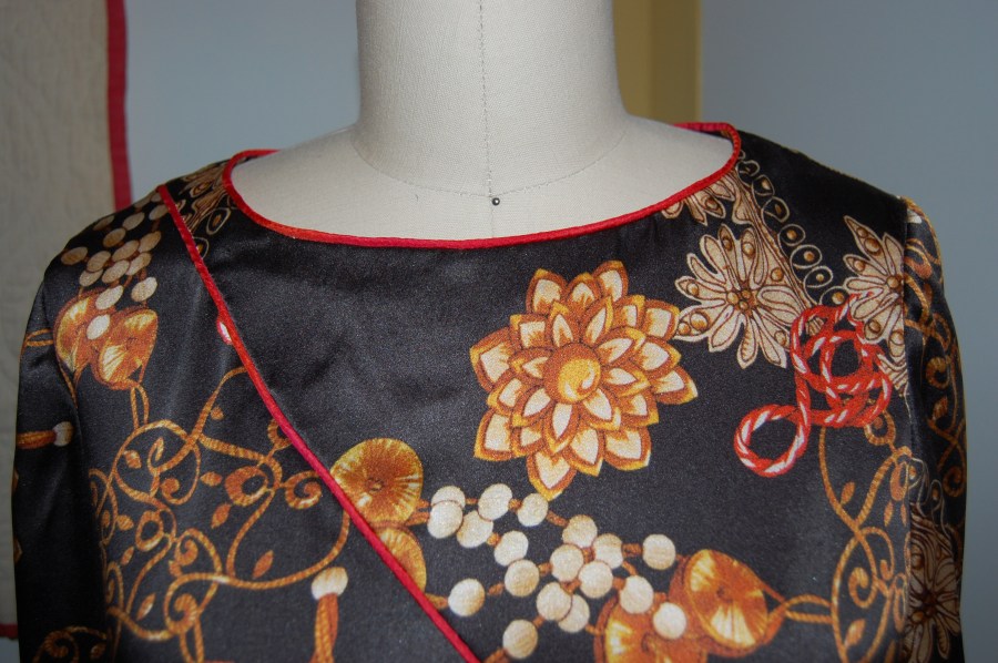 The reset sleeves and the finished neckline, cut a little wider than the pattern.