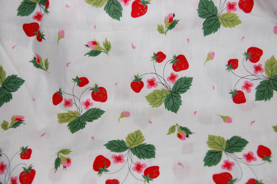 A strawberry print cotton for two little Spring sisters
