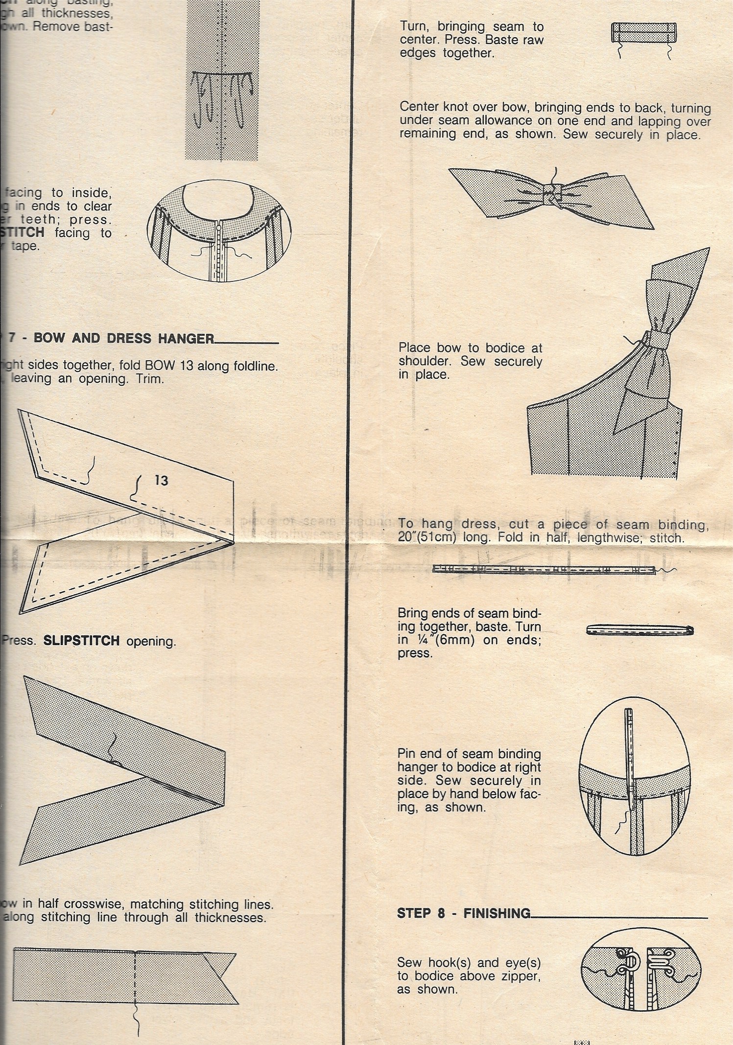Now – I really love a beautiful bow. And I knew just where to go to get the perfect bow pattern. I made this Butterick pattern in the early 1990s, and while I still like the dress I made (I’ll feature it sometime… it’s still in my closet!), I love the bow. I have used this bow pattern numerous times, always successfully.