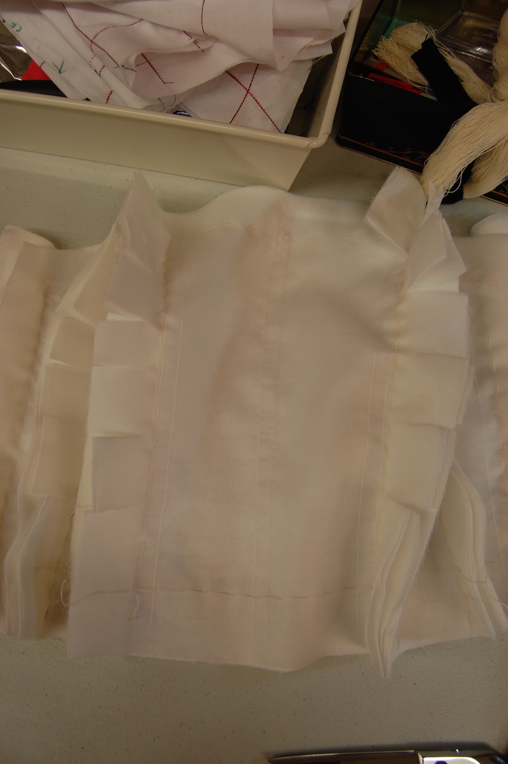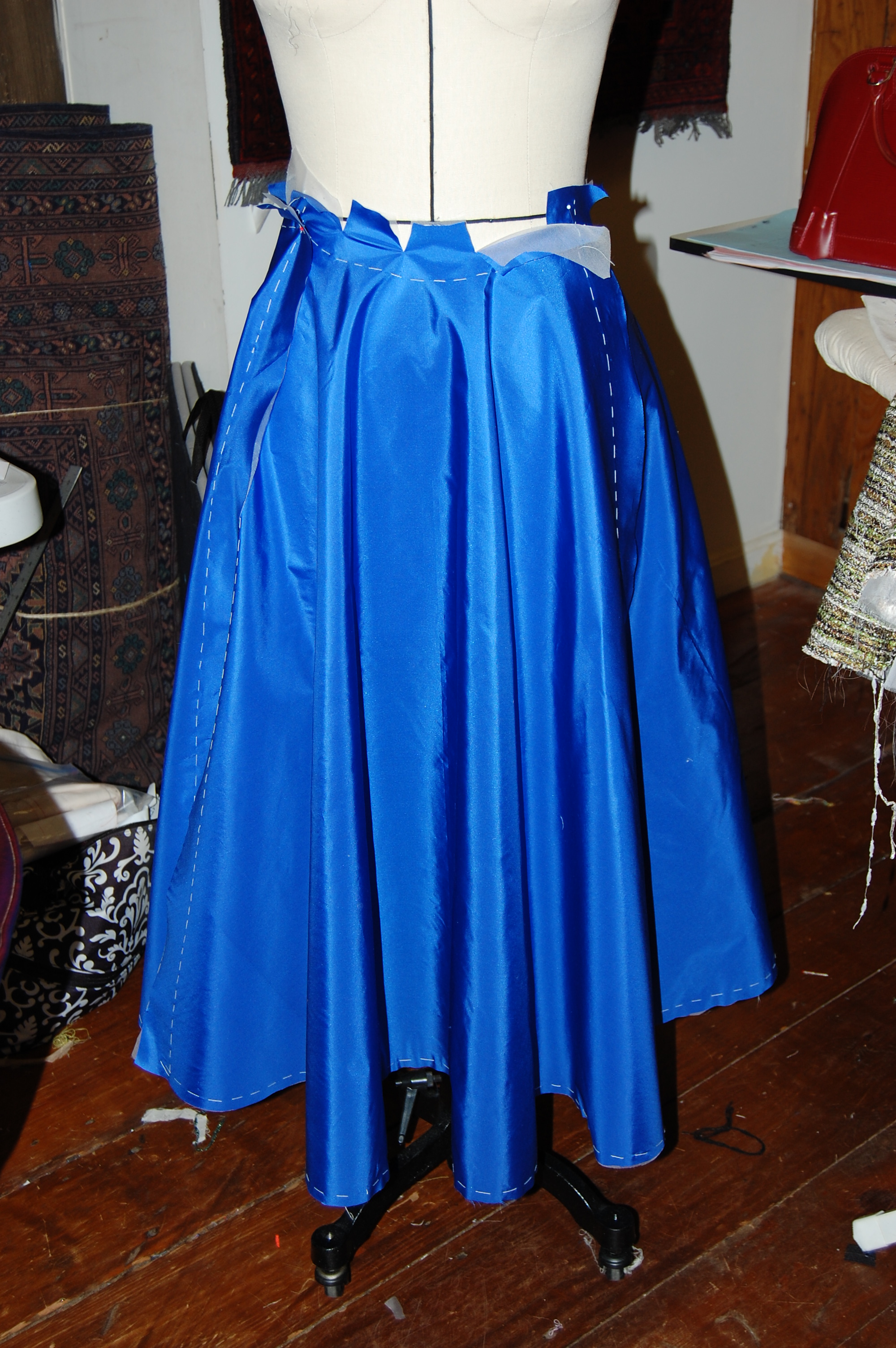 I decided to loosely pleat it instead of gathering it, so it would appear smoother around my waist. Because I had underlined it with silk organza, I had an anchor upon which to secure the soft pleats: