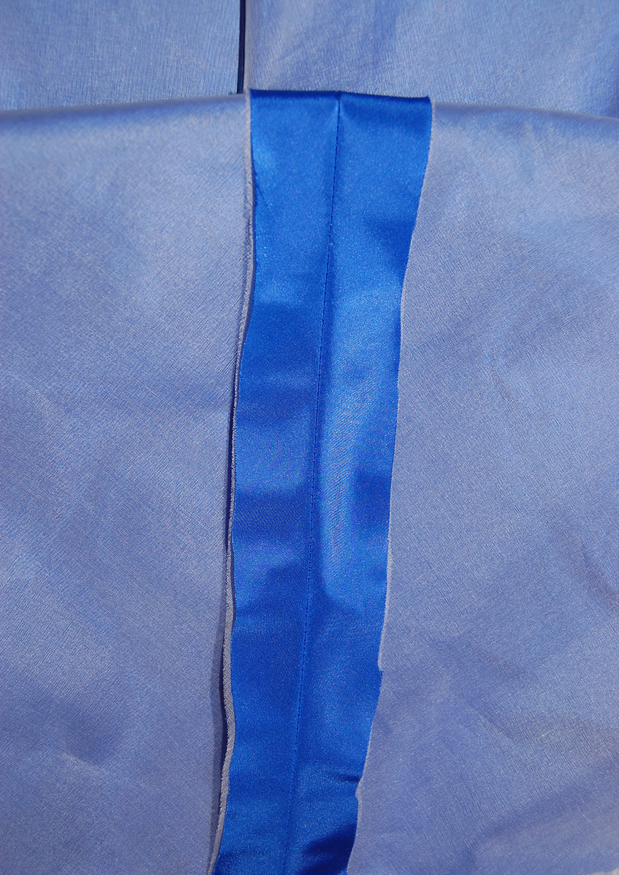 Then a funny thing happened. I ordered the red, which was out-of-stock temporarily. The owner of Emma One Sock (who, I might add, is one of the pleasantest and most helpful people from whom one will ever order fabric!), held up the order, at my request, while I thought about it some more. By the time I went to Baltimore to start my dress in Susan Khalje’s Couture Sewing School, I had just about decided to switch to yellow. With Susan’s hearty endorsement and the additional approval of my classmates, the decision was made: the sash would be yellow, not red.