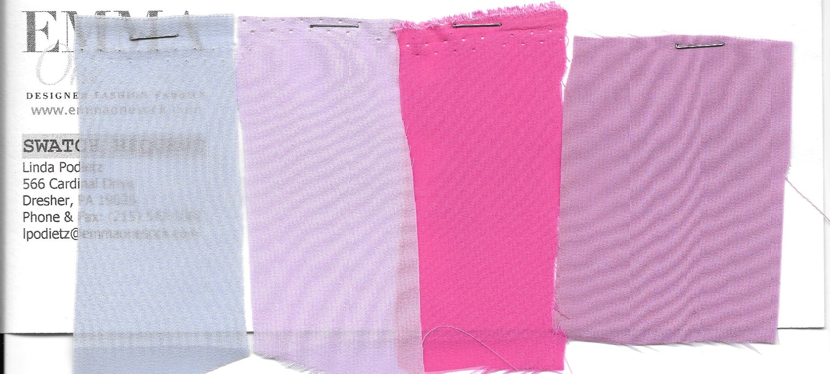 When it came to the lining, I knew I wanted to use silk crepe de chine. I ordered some swatches from Emma One Sock fabrics: