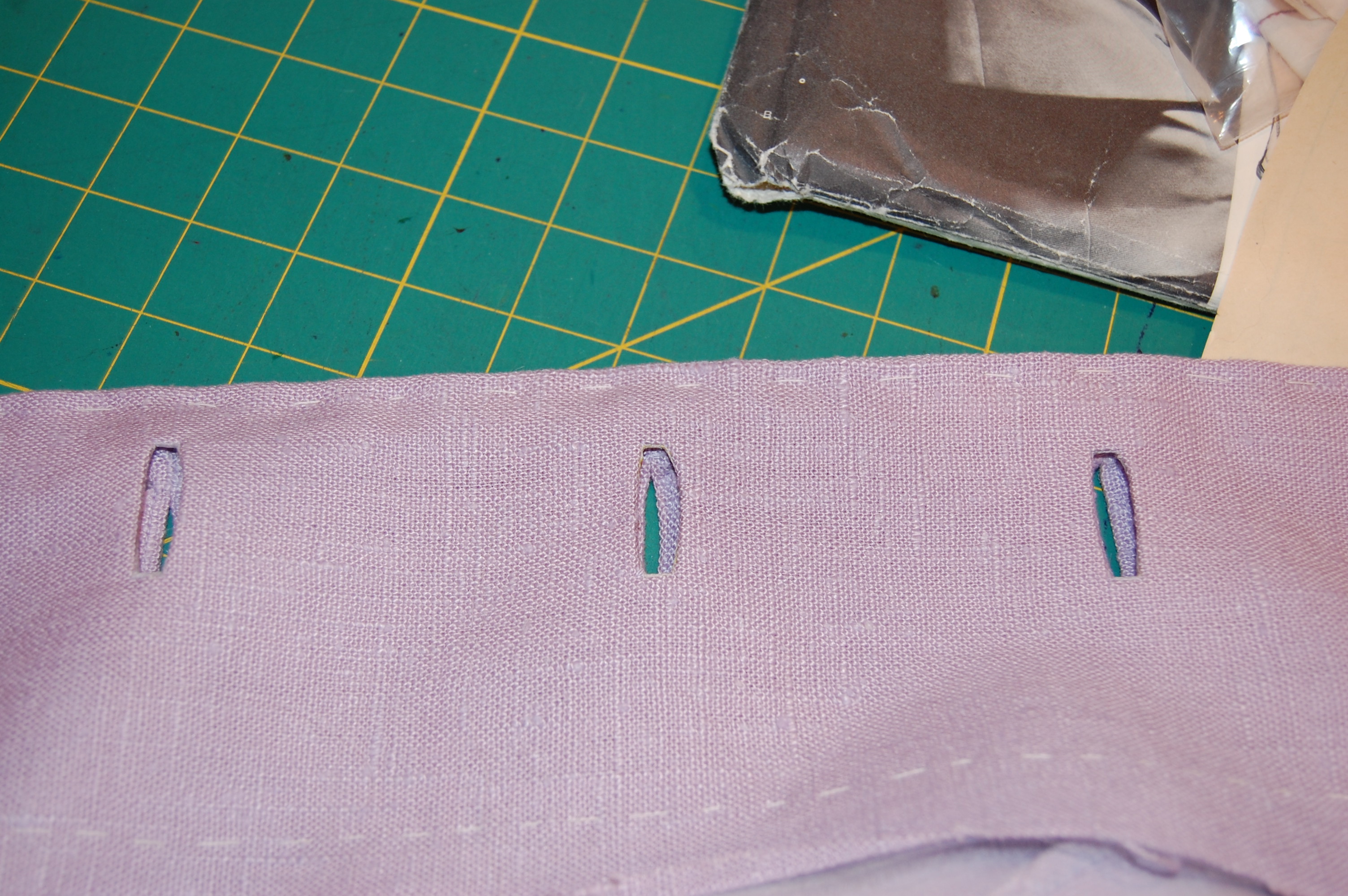 The pattern instruction sheets call for bound buttonholes, as shown here: