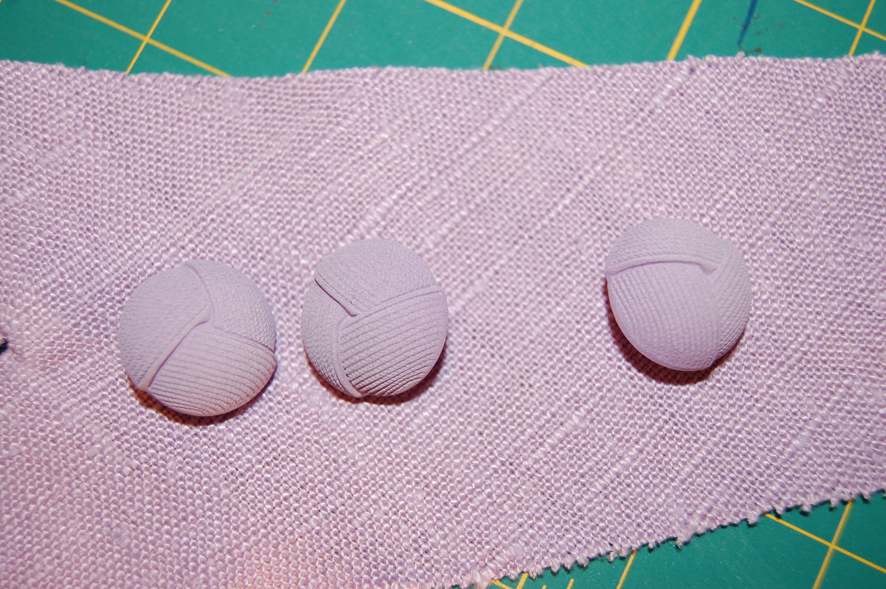 This photo shows the “monkey’s knot” design in the buttons, which compliments the linen weave, I think.