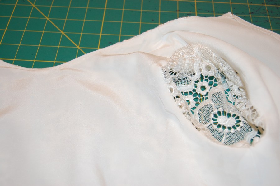 Here is an interior look at the silk lining sewn carefully to the armscye.