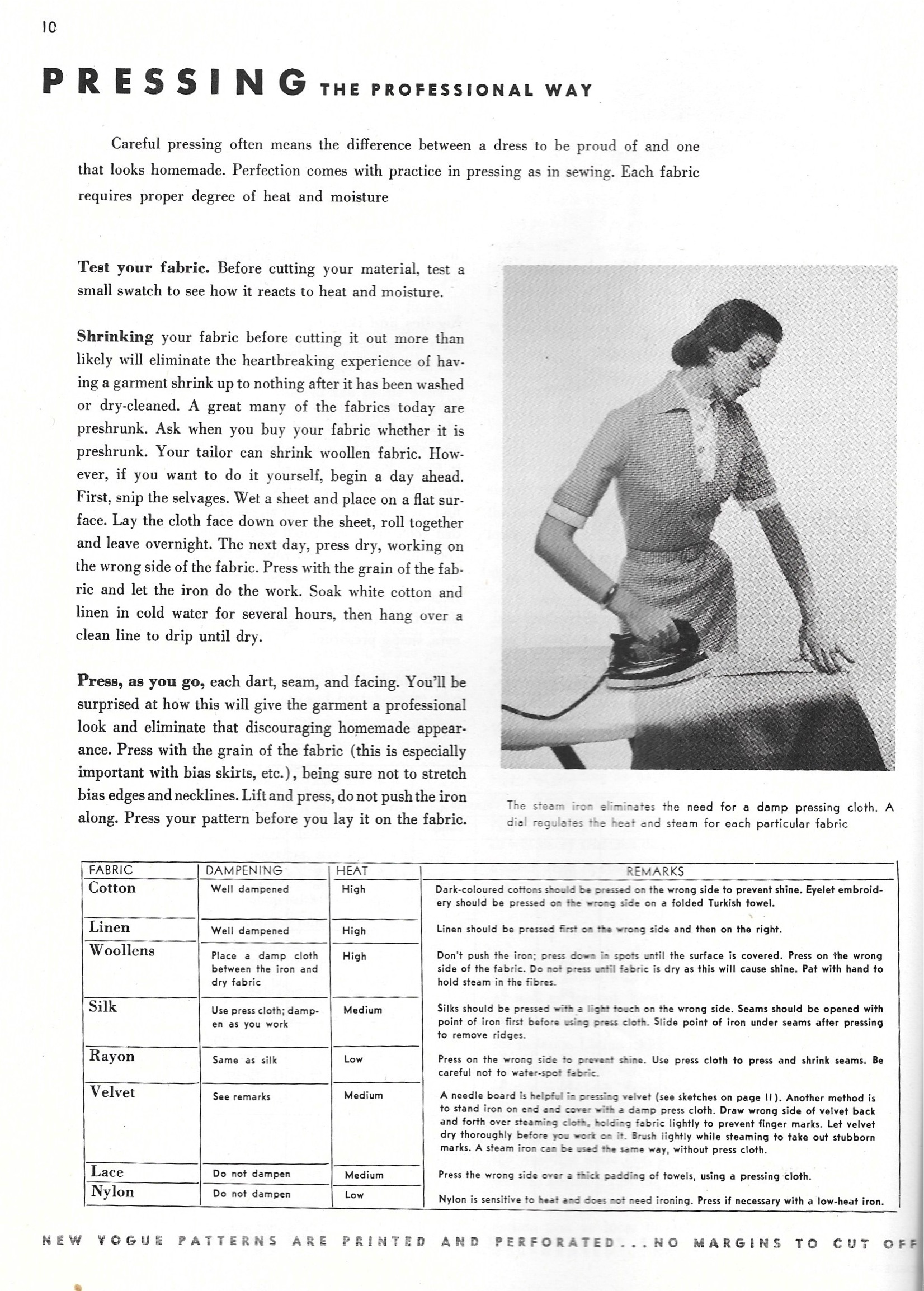 Te Vogue Dressmaking Book has an entire section on pressing, with guidelines still appropriate almost 60 years later. Click on the image to read the page.
