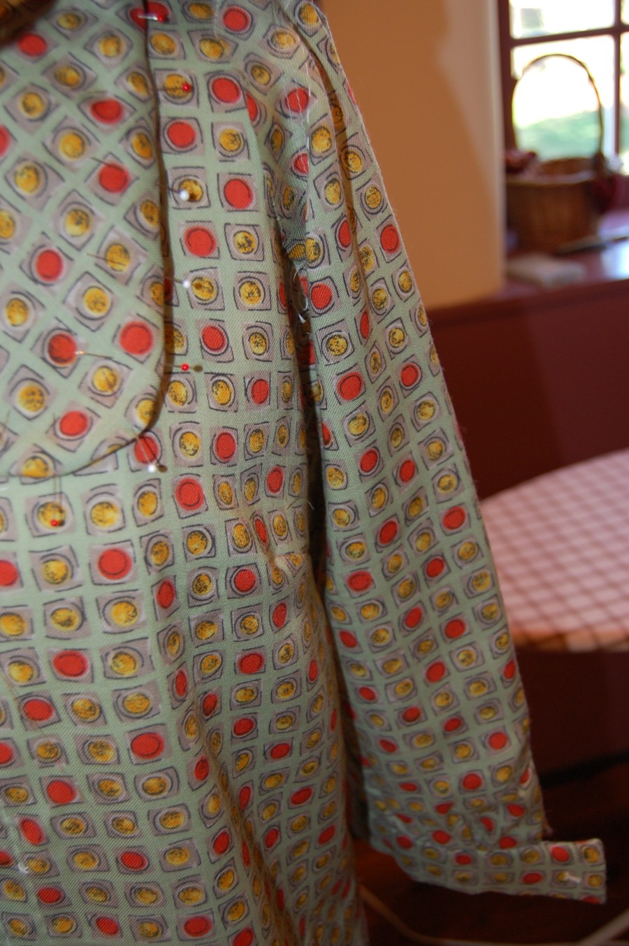 One of the sleeves pinned in place.