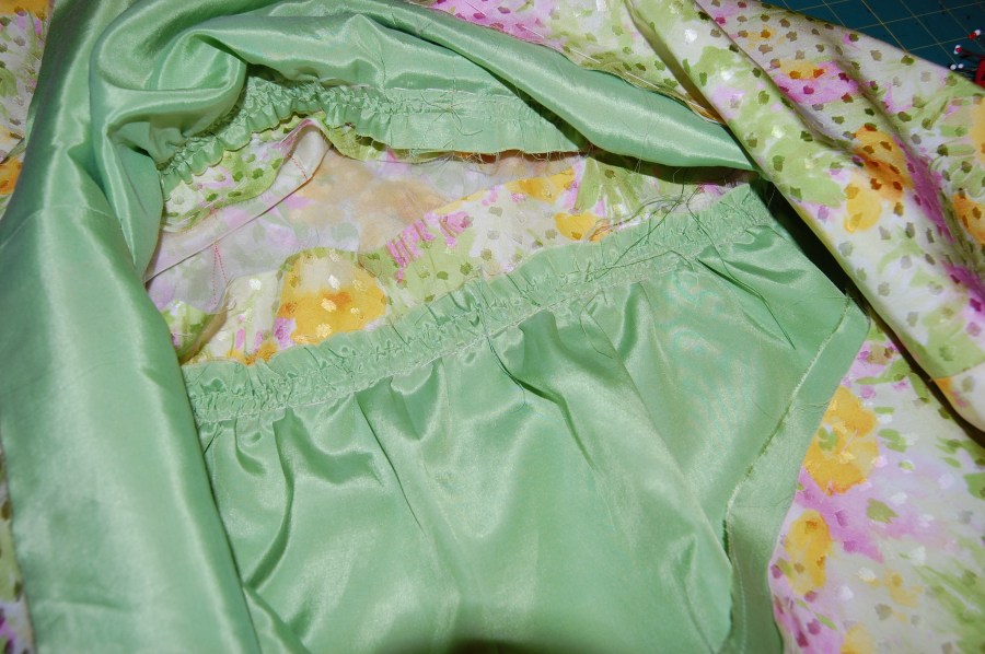 The skirt was attached to the bodice in an rather unusual way as you can see in this photo and the instruction sheet below.