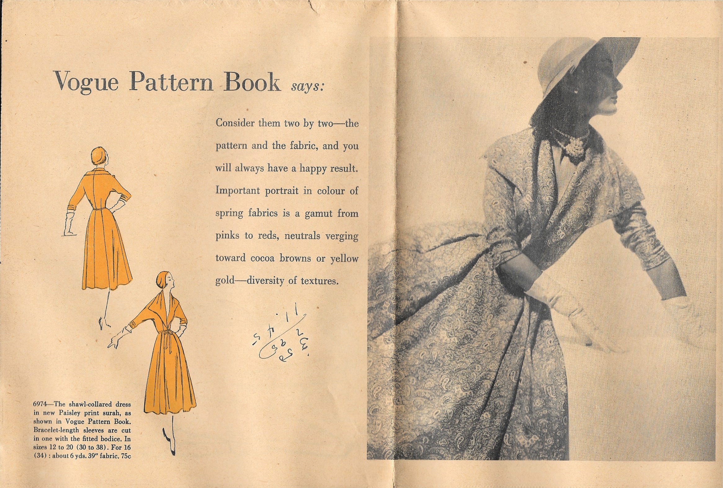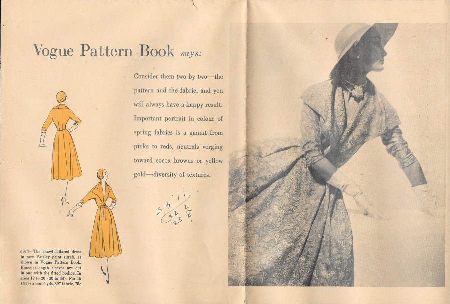 “Consider them two by two – the pattern and the fabric, and you will always have a happy result.” Timeless advice!