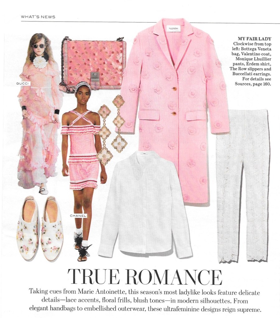 Looming large on this page from is a Valentino coat, traditional in design, but made very special by its stunning embroidered pink wool.
