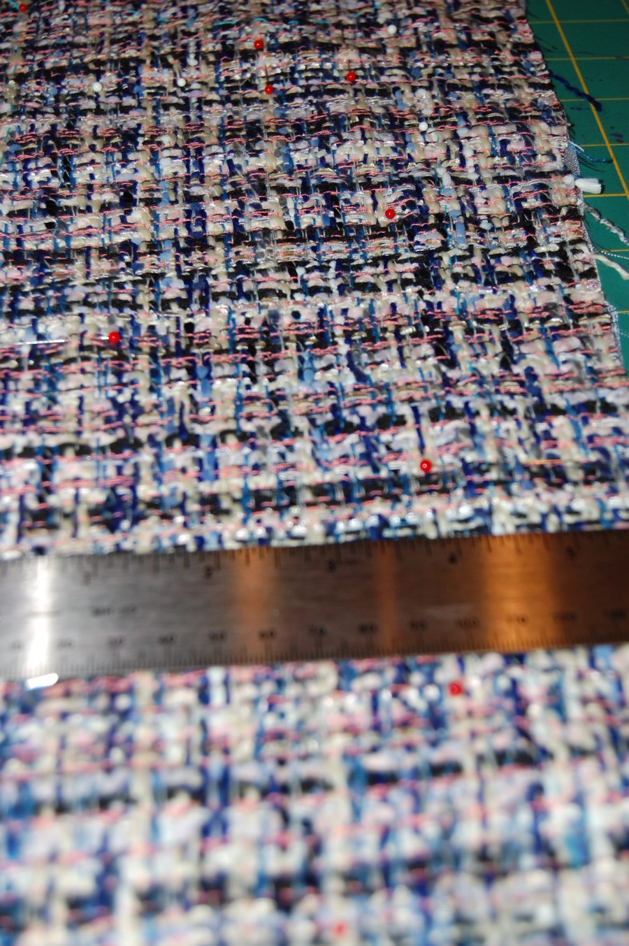 A ruler helps to determine where your quilting lines should be, generally about an inch apart from each other and the side seams.