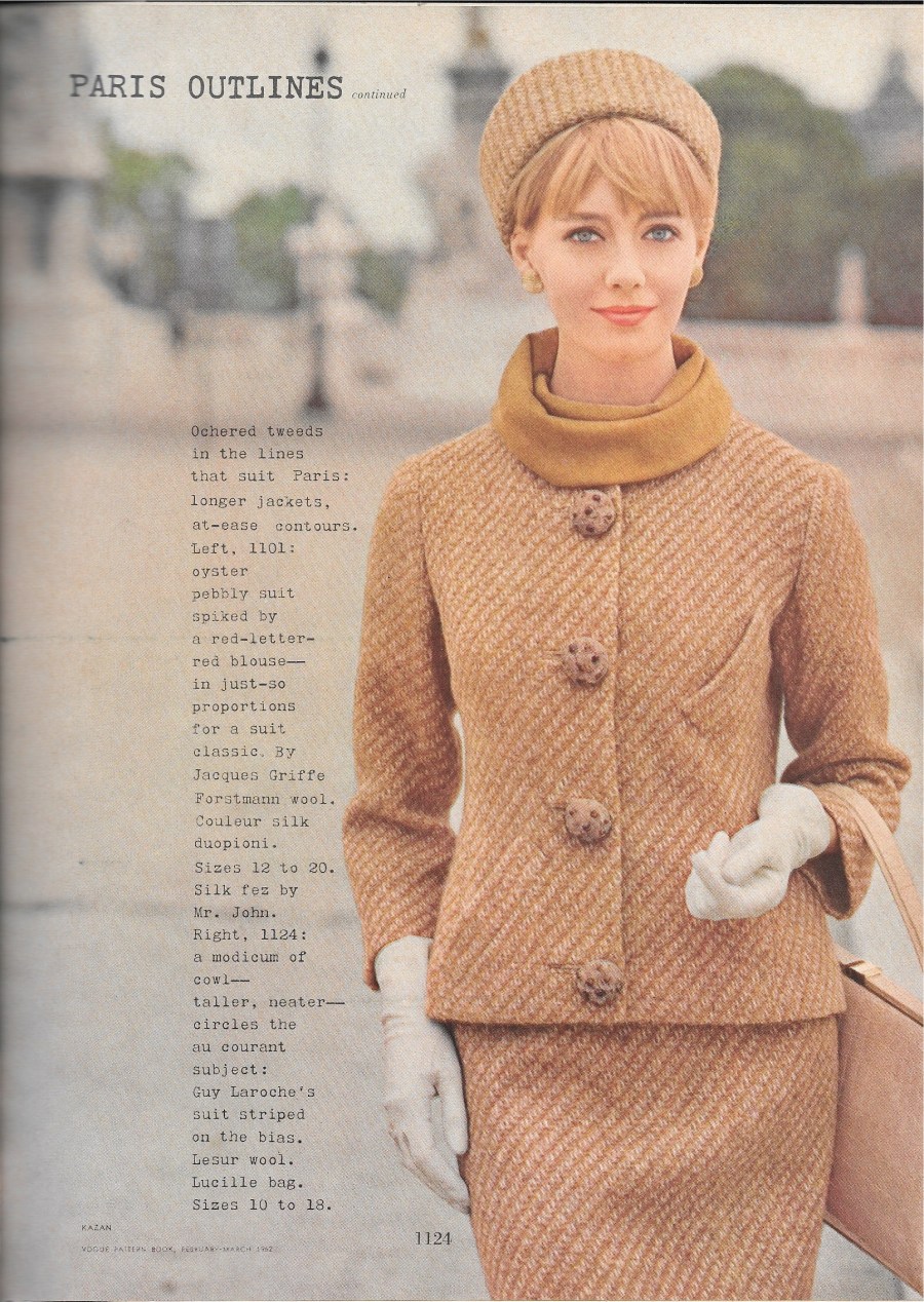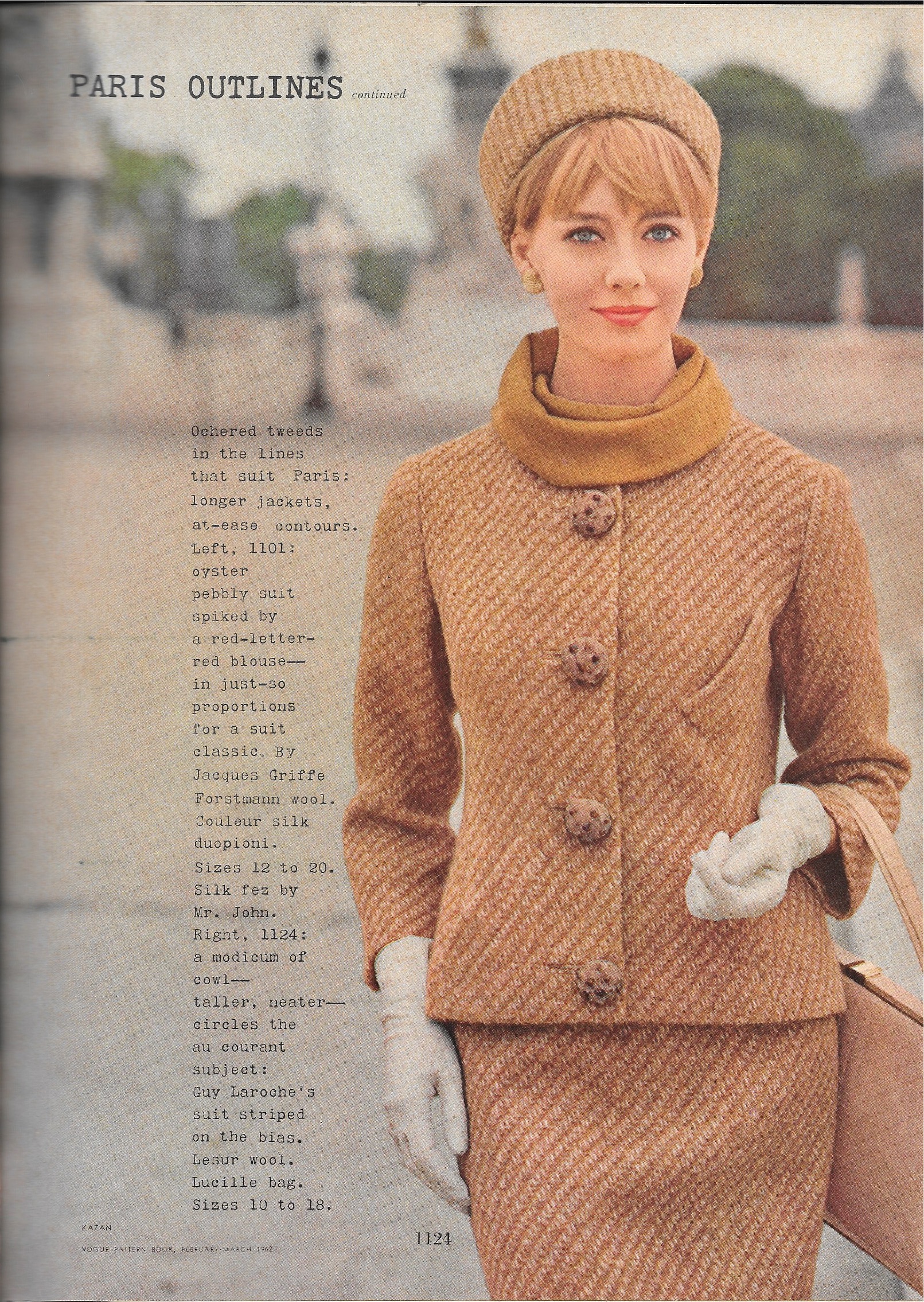 Here the wool is shown in a Guy Laroche design. From the February/March 1962 Vogue pattern Book Magazine.