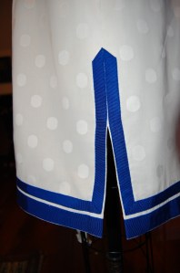 I used Dritz Wash-Away Wonder Tape to make the application of the ribbon precise. This was the first time I have used this product, and I thought it was wonderful! I haven’t washed my dress yet, but supposedly the Wonder Tape washes away without leaving a residue.