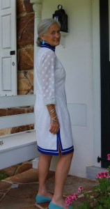 This is one of those projects which took a couple of years to evolve. I purchased the white polka-dotted cotton voile from Britex Fabrics about two years ago, thinking I would make a blouse. I considered patterns for it every once in a while, and then put it back in the cupboard. What was keeping me from moving forward on it was the fact I had over 2 yards of this 56” wide fabric, more than enough for a blouse. Using it for a dress seemed the more efficient way to proceed. All I needed was some inspiration.