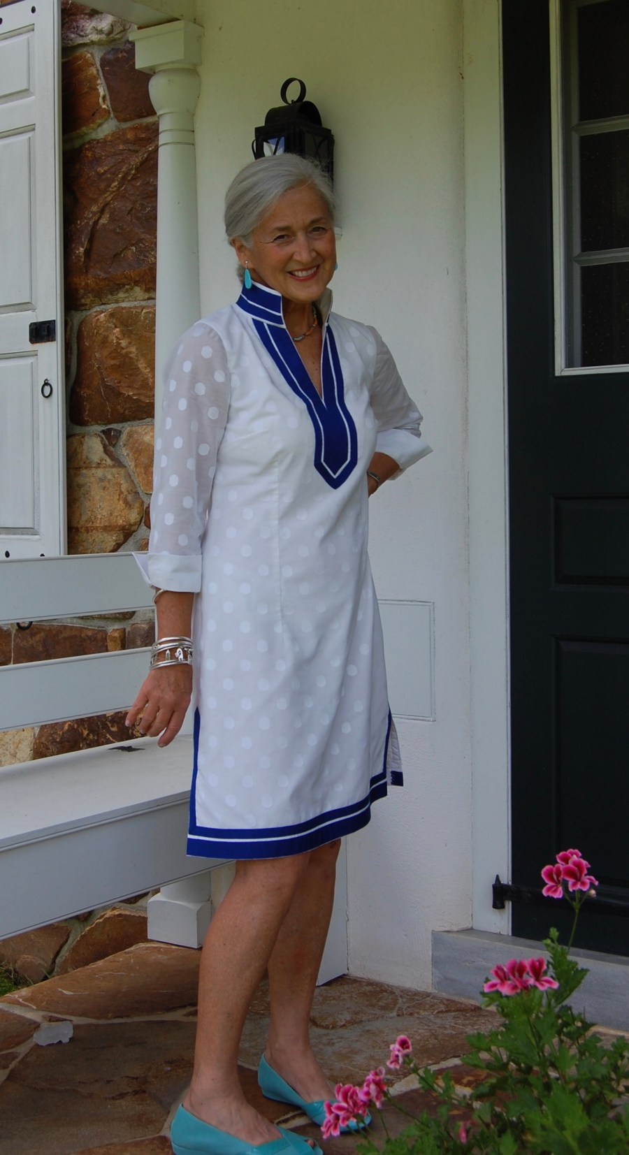 The darts I added to the front give the dress a nice fit. I also used a 12″ side zipper, or else I would not be able to get the dress on!