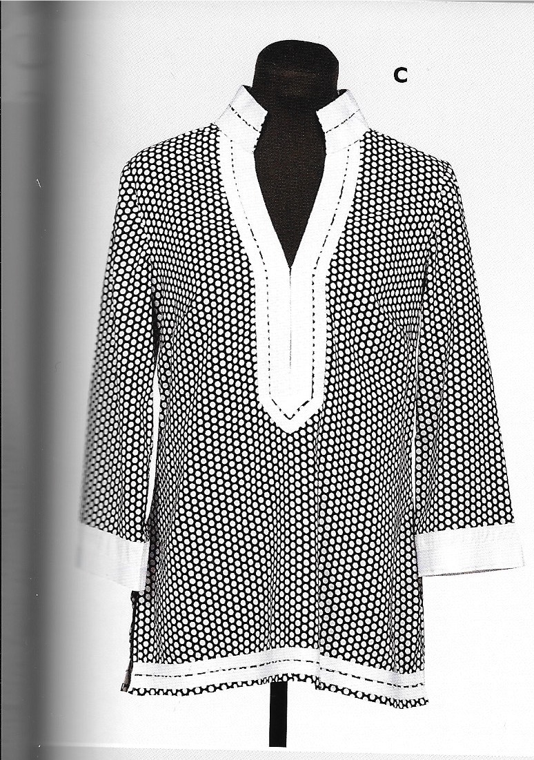 Shown on page 65 in The Tunic Bible is this top. The combination of the wide split placket, the angled collar, and the split cuffs really appealed to me. All three are really lovely details.