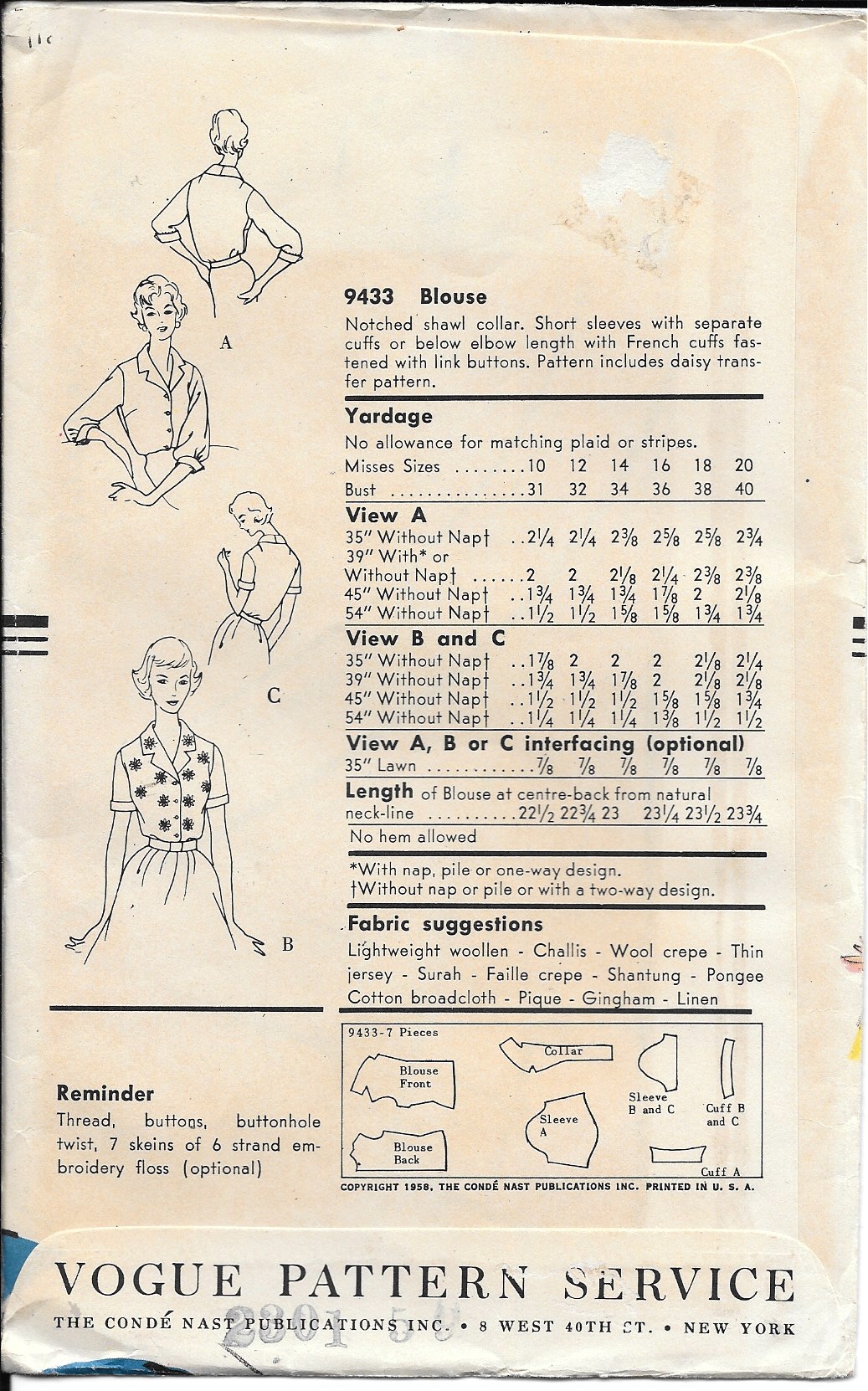 The back of the pattern envelope often gives important information, such as placement of darts. This one also told me that the collar has a center back seam, which is a stylistic detail I like.