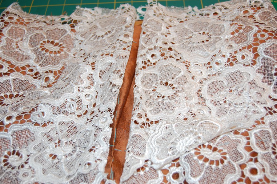 Ready for inserting the zipper. This is a good example of the flaps of lace which make this process look so messy!