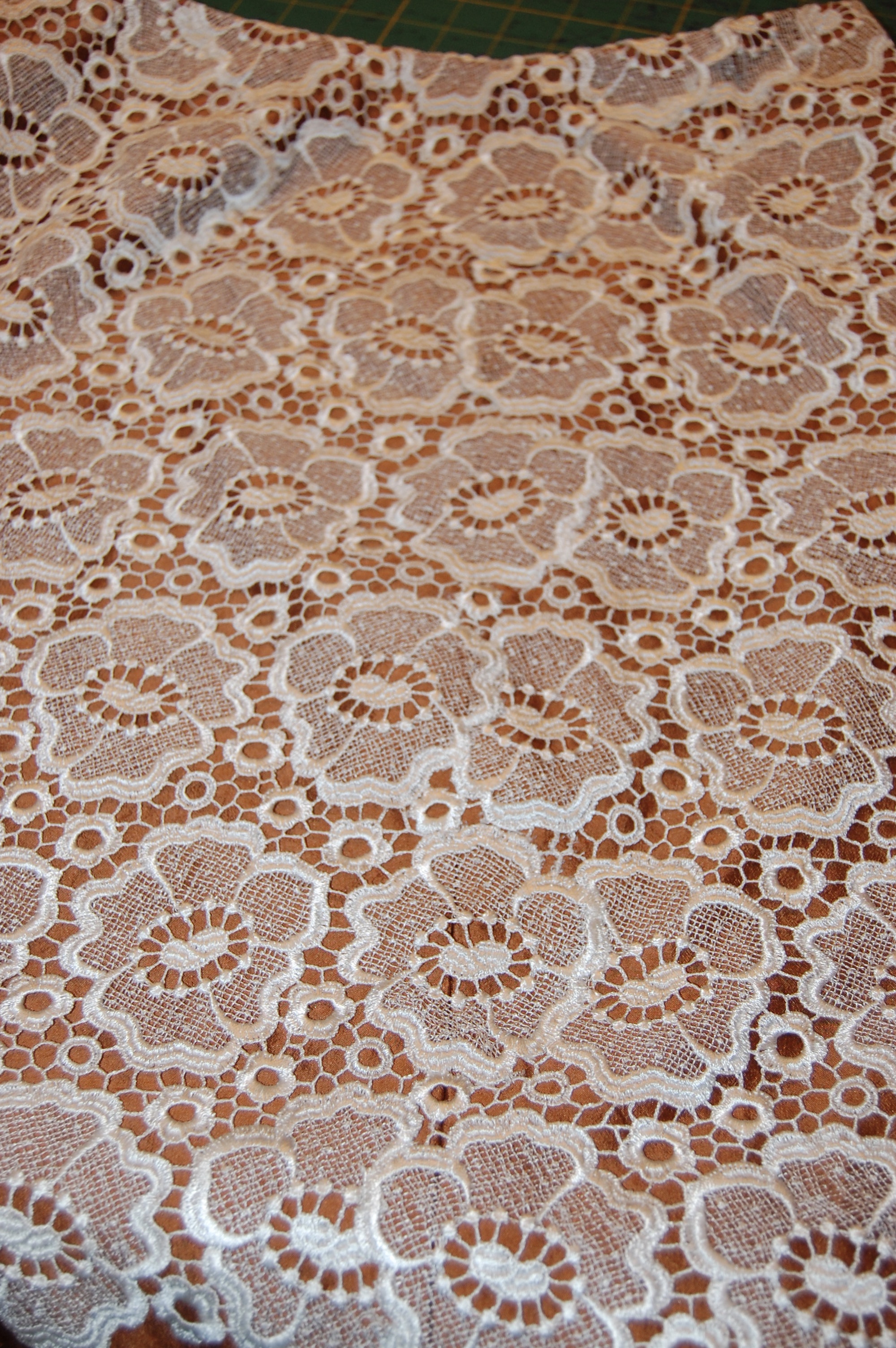 The back of the skirt with all the lace attached and snapped in place.