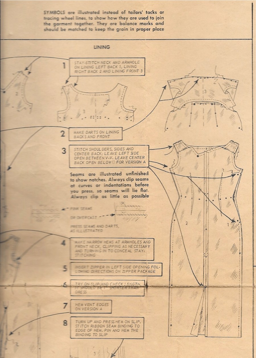 The series of dots around the waistline indicate the sewing line to anchor the dress to the lining.