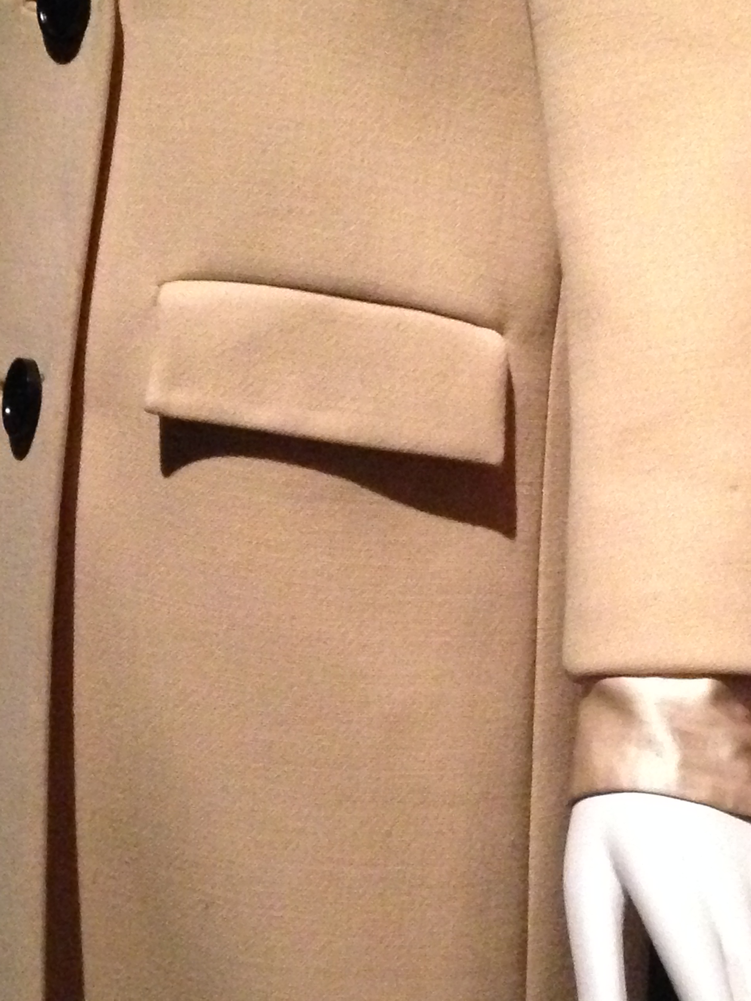 Label: Nortell. Off-white coat with black collar, 1962-1965. Wool and velvet. MFIT, Gift of Mrs. Jane Albert