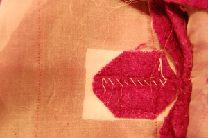 Other procedures I used to help “tame” this fabric were:  lots of judicious trimming of seams and corners; clipping, clipping and more clipping; lots of steam and pressing; lots of basting of seams.