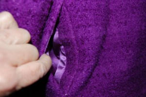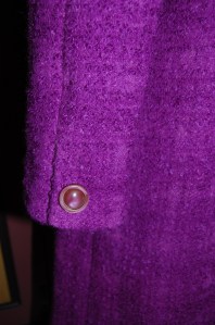 So my “coat for many reasons” allowed me 1) to use treasured fabric which had been in my collection for a few years; 2) to take advantage of the focus of this beautiful purple color during the year of  “Ultraviolet;” 3) to use a coat pattern which I really wanted to use again after making it once; and 4) to have experience in working – successfully – with such a heavyweight wool.
