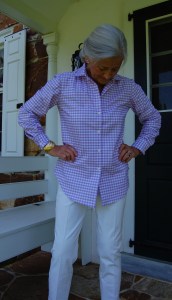 Because the fabric is a printed gingham, when I roll up the sleeves, as I am wont to do, the reverse white of the fabric shows. This doesn’t bother me as much as I thought it might.