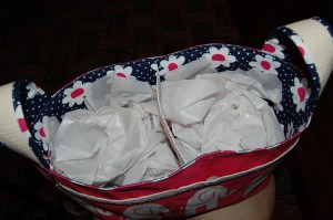 I have made so many of these bags and they always seem to be a welcome baby gift. These are made from a Noodlehead pattern.