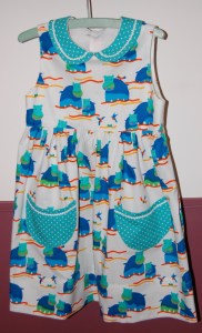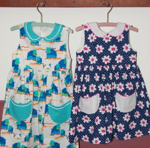 This was a very satisfying project – the girls love their new dresses, and I felt very virtuous using two fabrics that have been folded away in my sewing room closet, waiting for their new lives to begin. Hippos and daisies turned out to be a winning combination.