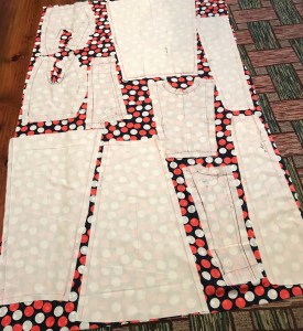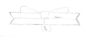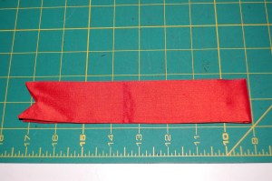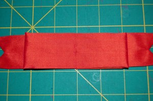 7) I don’t believe there is any magic formula for determining the spread of the bow – it is a visual determination, and I experimented until I had it looking well proportioned. I stitched across the width of the fabric tube at that spot.