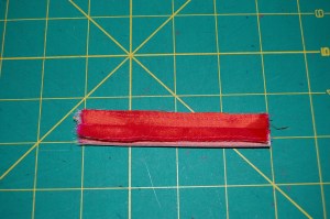 8) The bow was now ready for its “knot.” I had to determine how wide I wanted my knot to be. I chose to make it one half the width of the belt, or ¾” for the finished width.
