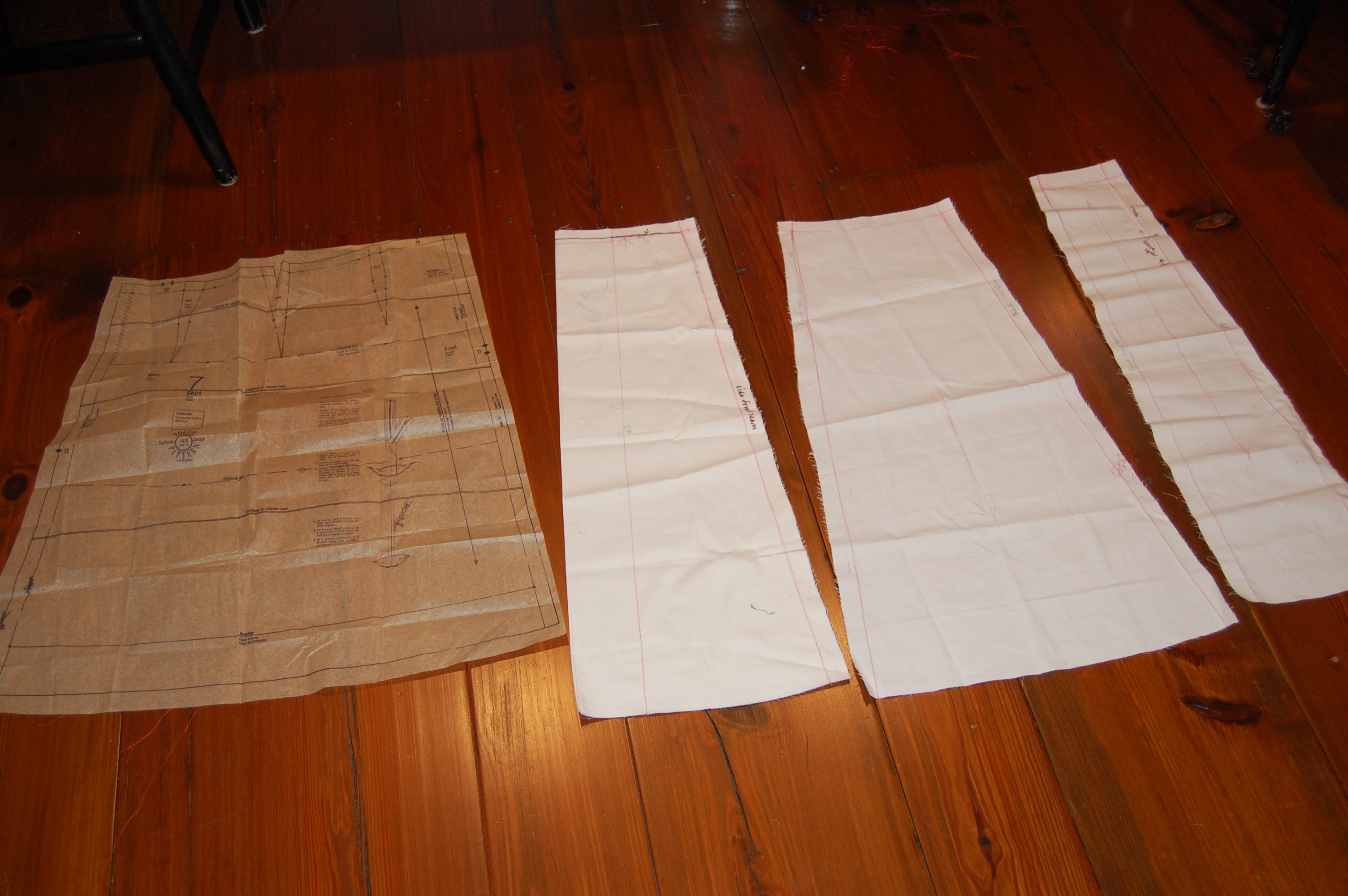 On the left is the one-piece tissue pattern for the skirt. Using the dart lines on that pattern helped me determine the angles I needed for my skirt.