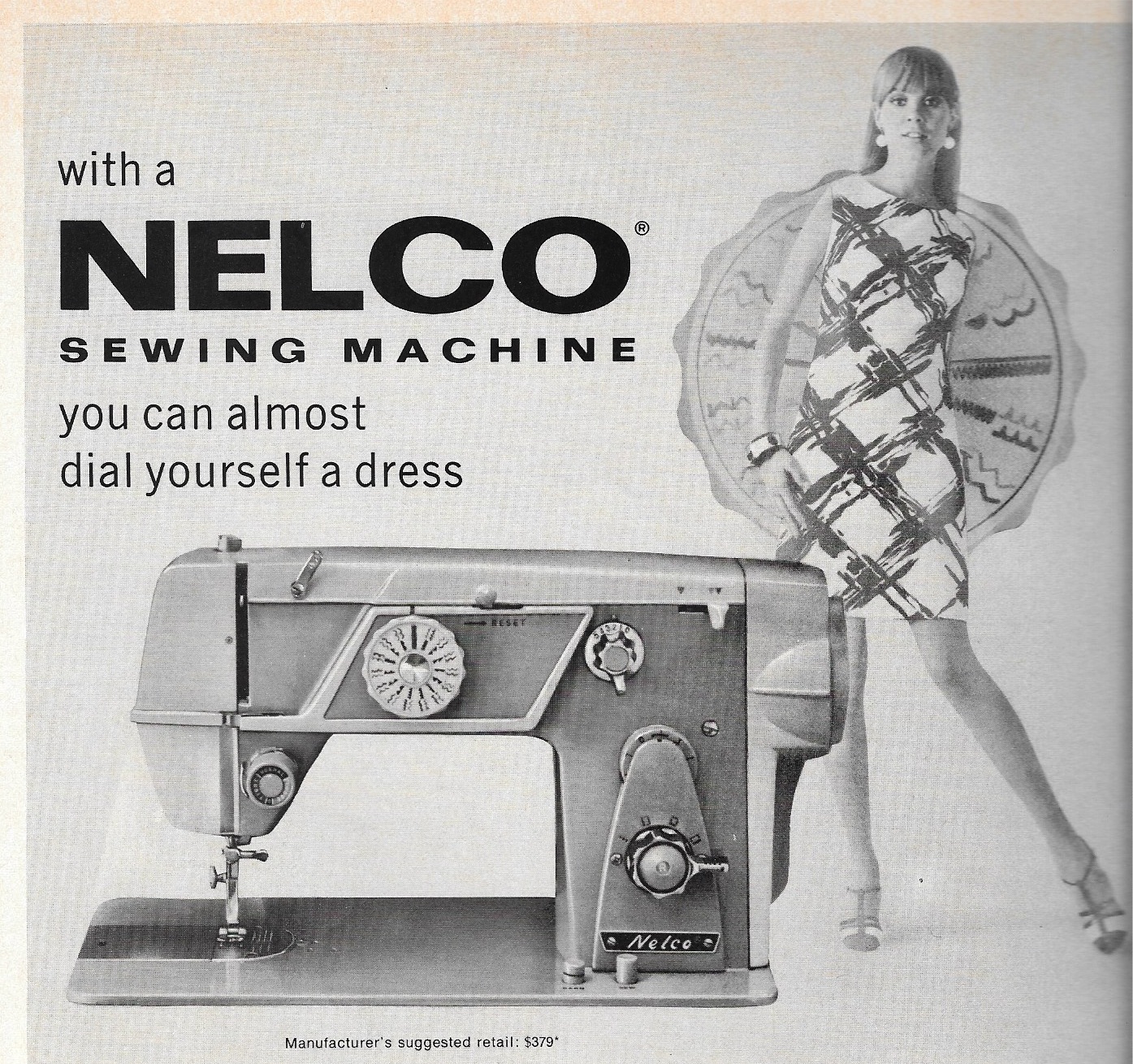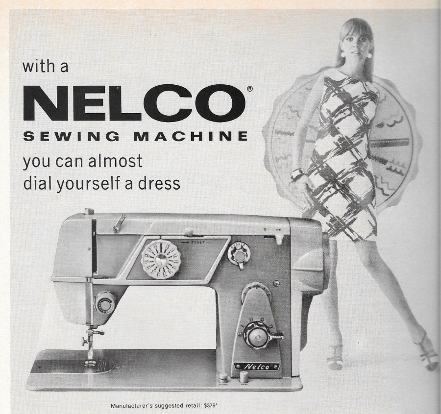 Even this sewing machine ad features a dress with an abstract geometric fabric design. Again, this is from the February/March 1968 Vogue Pattern Book International, page 24.
