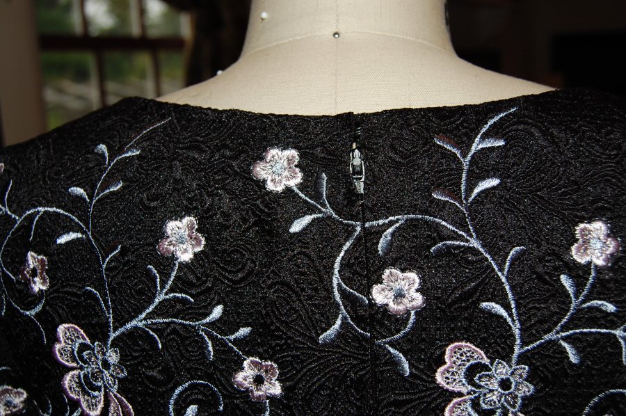 I hand picked the zipper, which virtually disappears in this dark jacquard embroidered fabric.