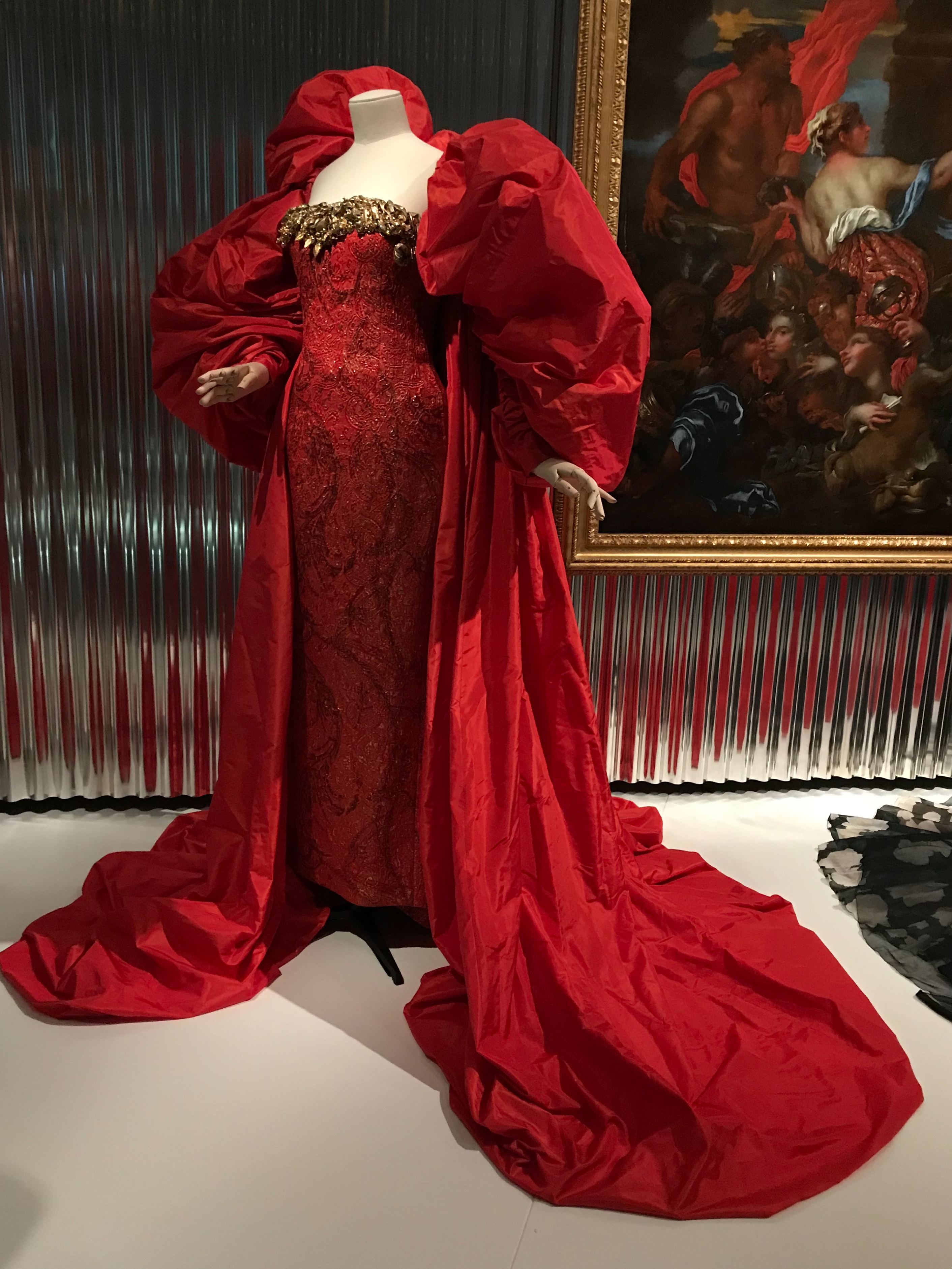 Long embroidered quilted lame dress and taffeta coat, Fall-winter 1992.