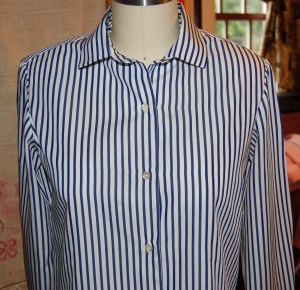Susan also suggested that I make an adjustment to the front edges of the collar. Although I had under-stitiched it, I apparently did not coax the front-edge seams back away from the edge enough, allowing them to show more than they should. So I took out a majority of the understitching and re–did it, too.