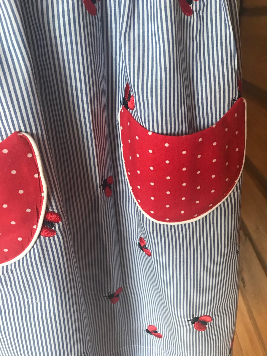 I made white piping for the pockets and collars out of kitchen string and white batiste.
