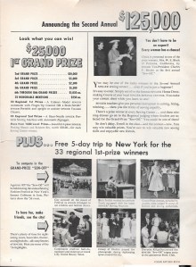 By the next year, 1958, the contest included a new category, called the Young Homemaker Division, for young women between the ages of 18 – 25. $9,000 of prize money was awarded to the top four winners. What beautiful dresses and ensembles they created!