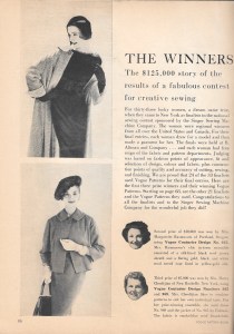 And – what do you know about them? One of the more venerable sewing contests is the annual Make It With Wool. Founded in 1947, it is still going strong and features winners in various categories/age groups. Prizes for winners and runners’-up include scholarships, sewing machines and fabrics, and of course, national recognition in the field. Pattern Review sponsors several sewing competitions throughout each year, in addition to a “sewing bee.” Its followers are legion at this point, and it is always a coup to be a winner, selected by readers’ votes.