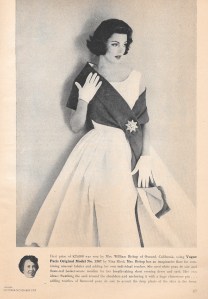 Also that year, the General Federation of Women’s Clubs sponsored their own sewing contest. The theme of the contest was “the ideal costume for a clubwoman’s wardrobe.” Points of consideration in the judging were: “fashion-rightness,” “versatility and appropriateness for club occasions,” “becomingness to the wearer,” “over-all fashion effect,” and “workmanship.” 24 of the state finalists submitted entries consisting of a dress with its own jacket or coat. That is still to this day a winning combination, classic and chic.